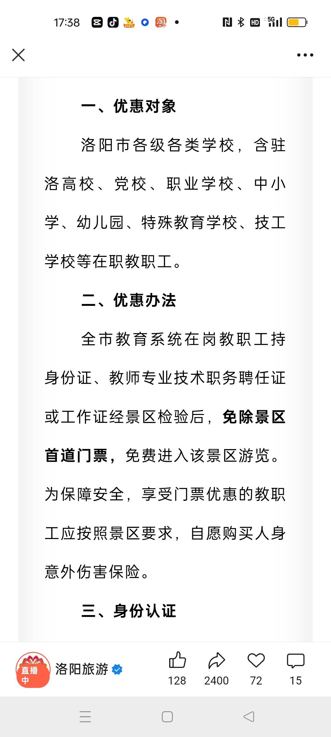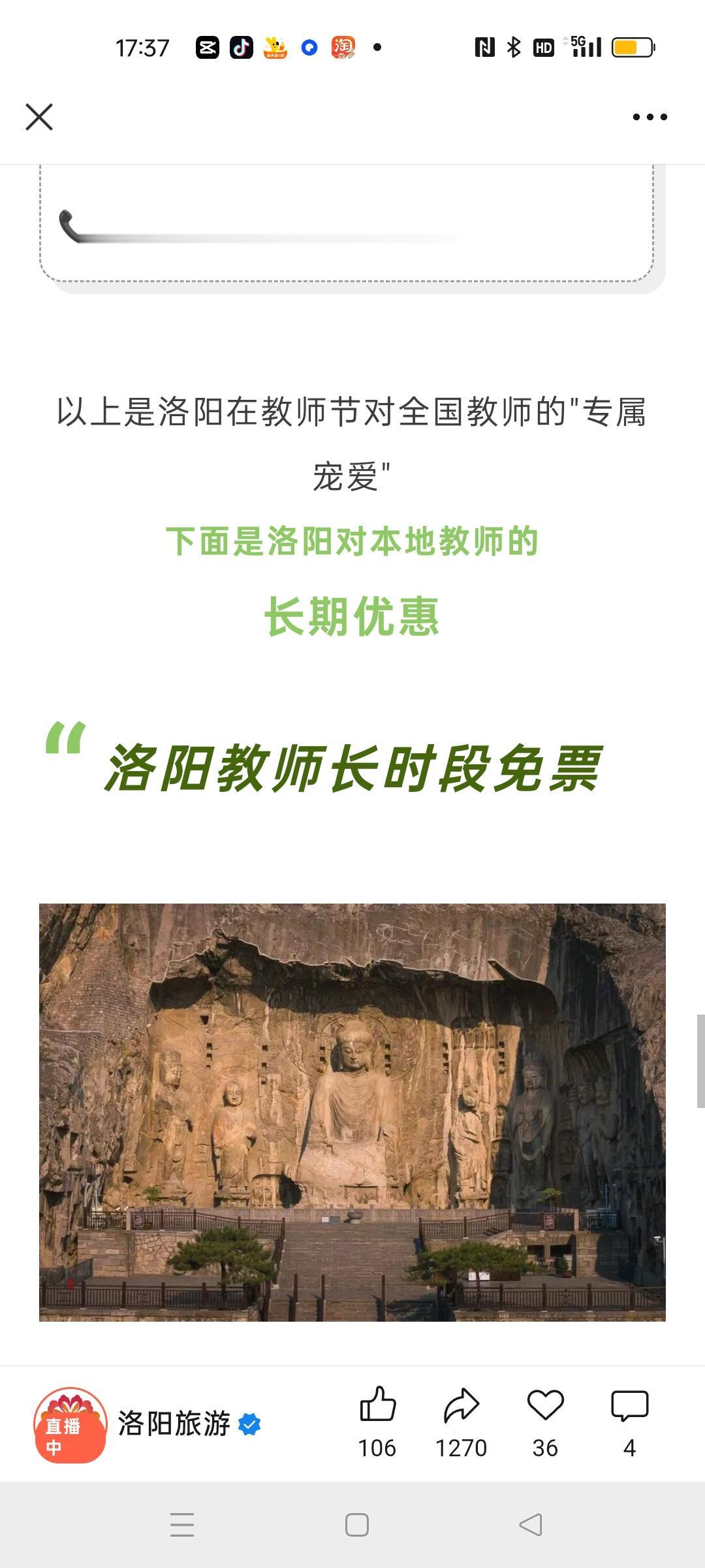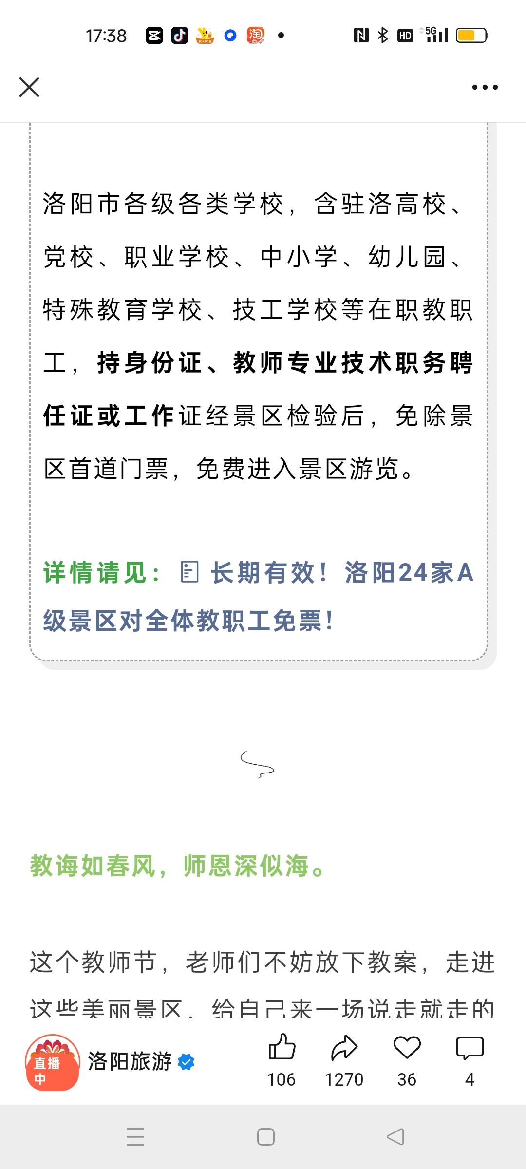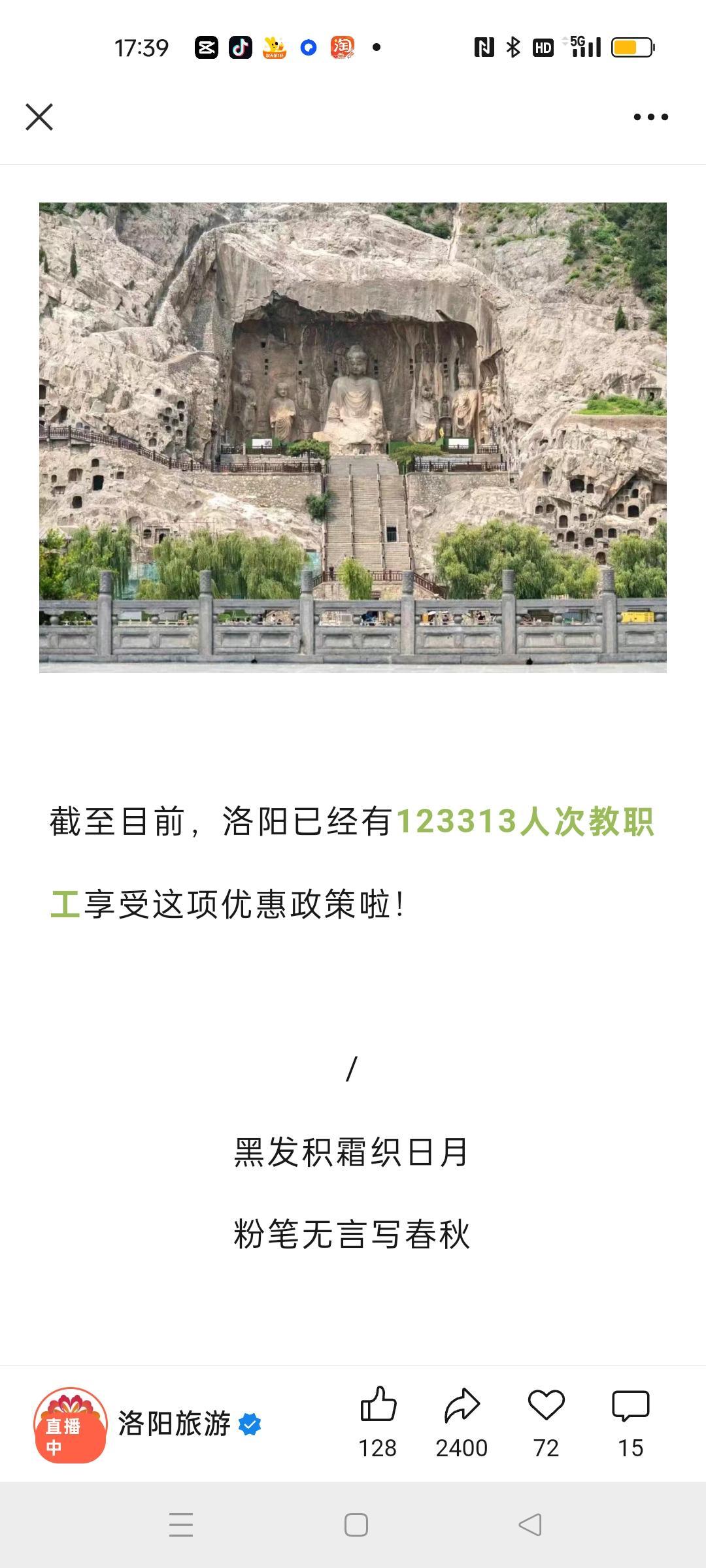 洛阳旅游景区对全国教师的优惠你收到了吗?一支粉笔,书写人生几十载三尺讲...