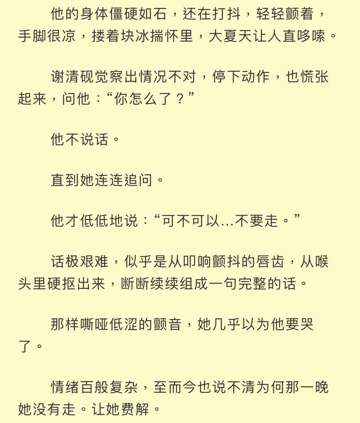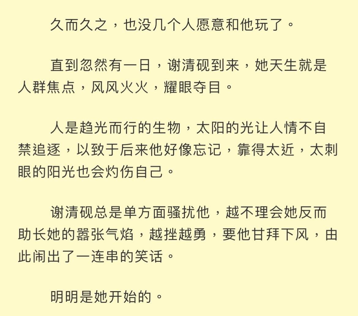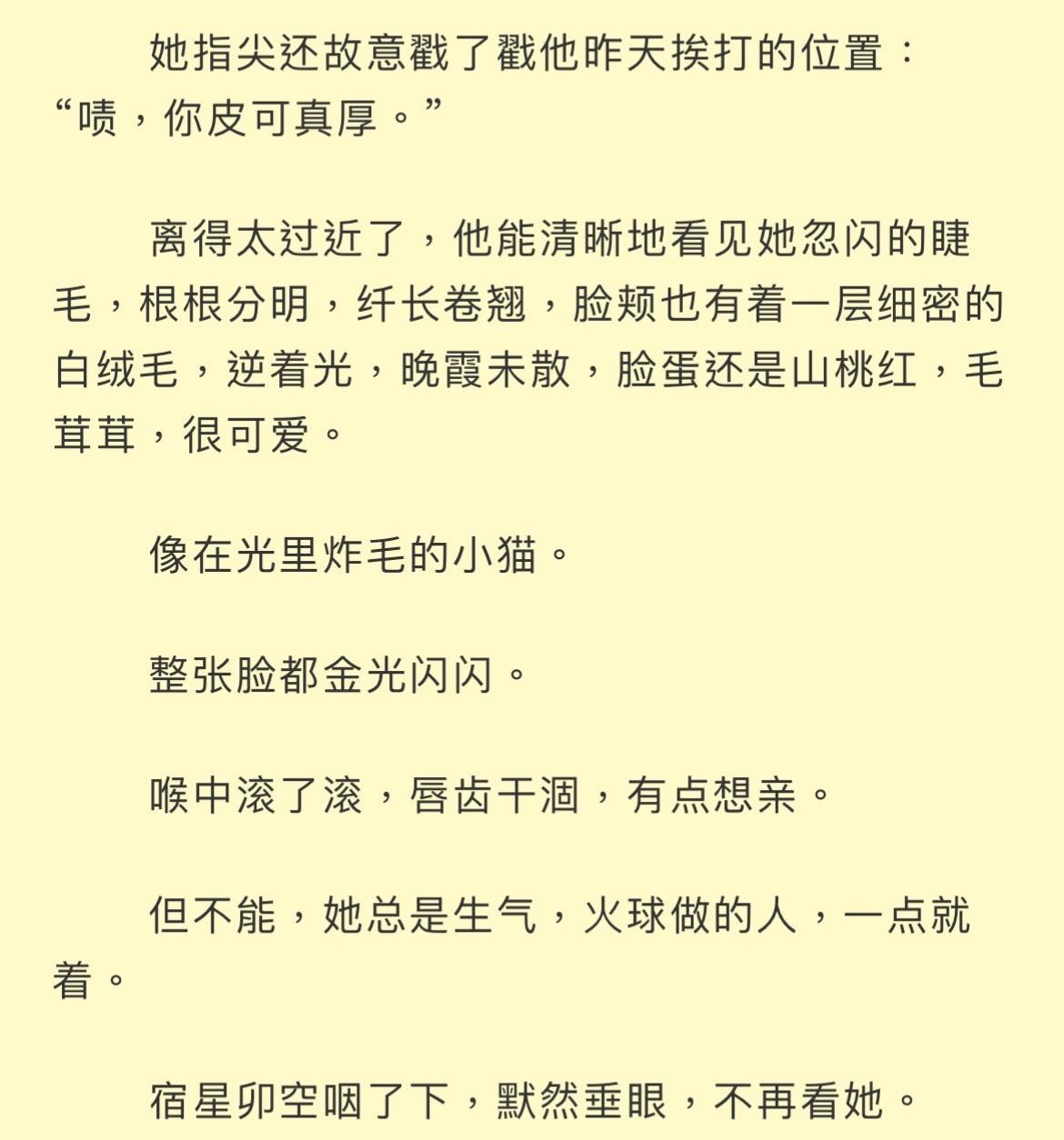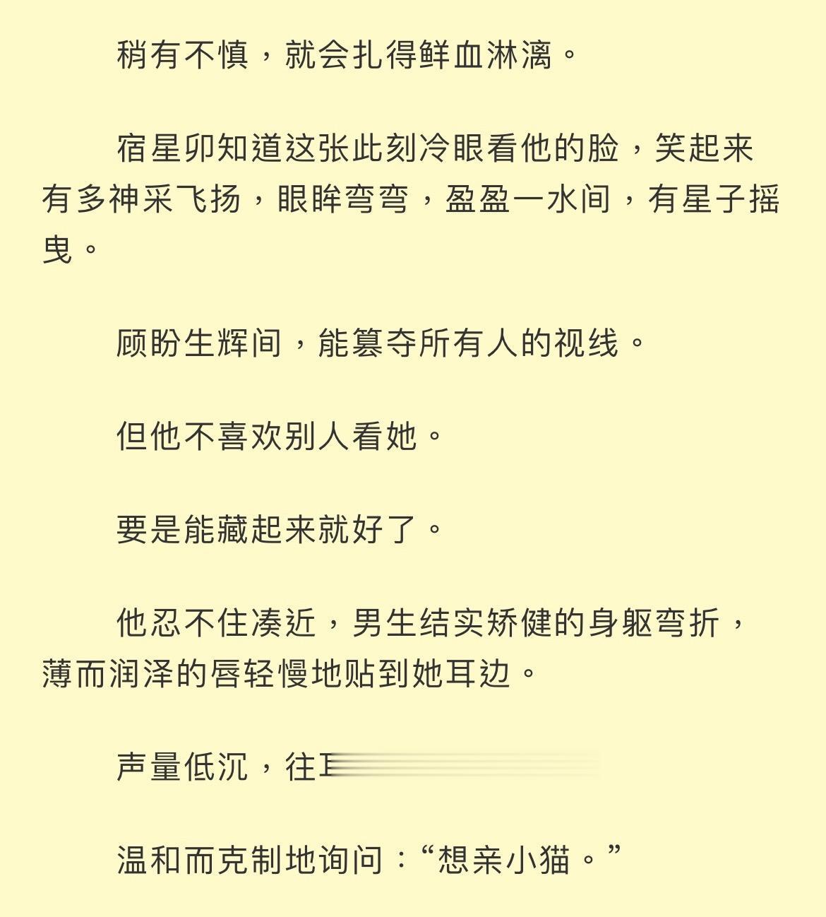 苦于没有小猫文学久矣,女主性格傲娇嘴硬被动,好有张力又清纯的小情侣,什么情绪都不外露和啥都憋不住天生一对!这段关系明确来说是男主需要女主,男主离不开女主。男主意识到女主对他有很大的吸引力,他预卜先知,觉得这可能会让自己陷得很深,希望女主不要靠近他。结果女主真的不来找他之后,他又emo