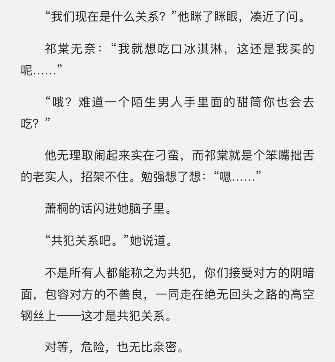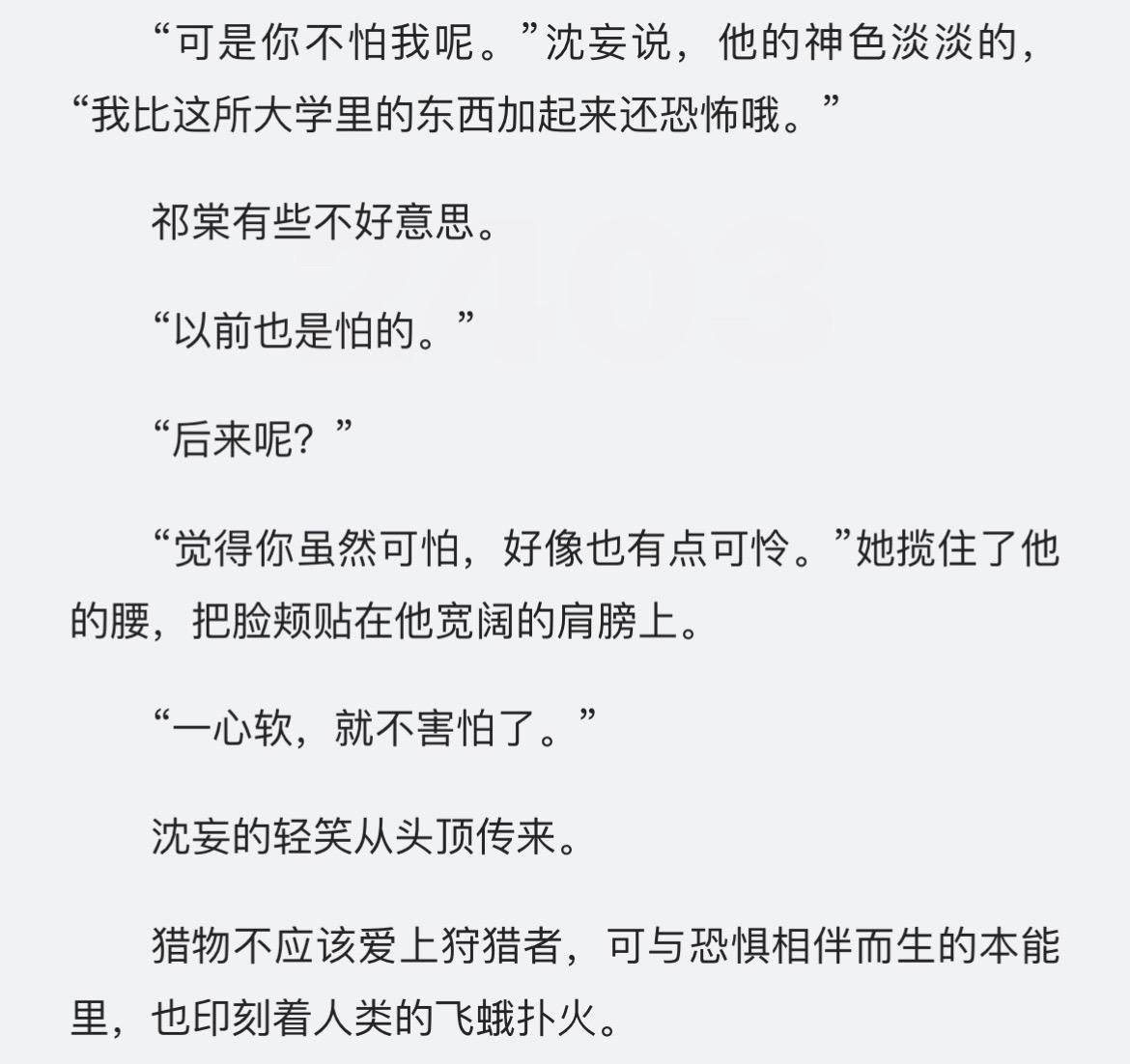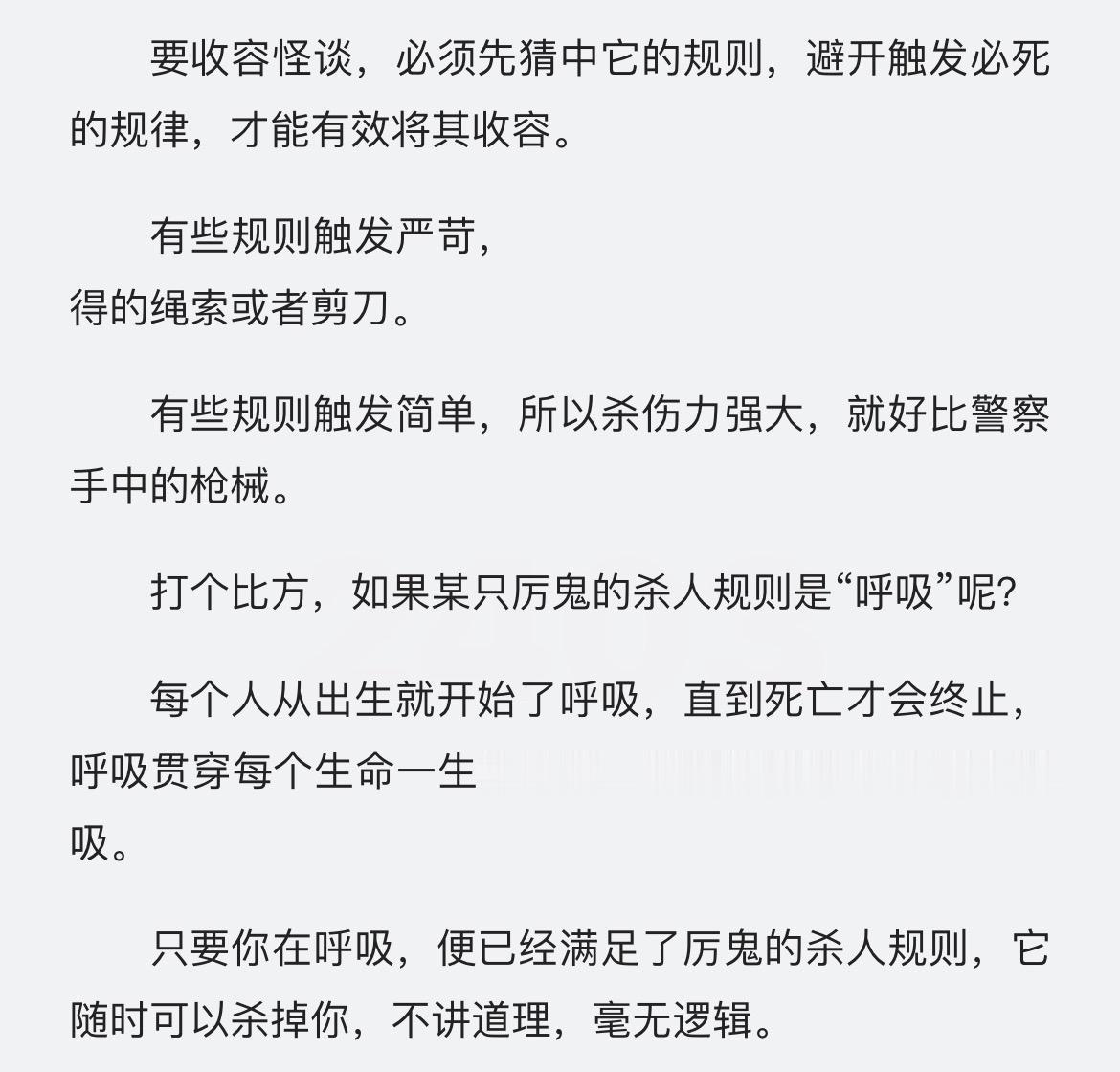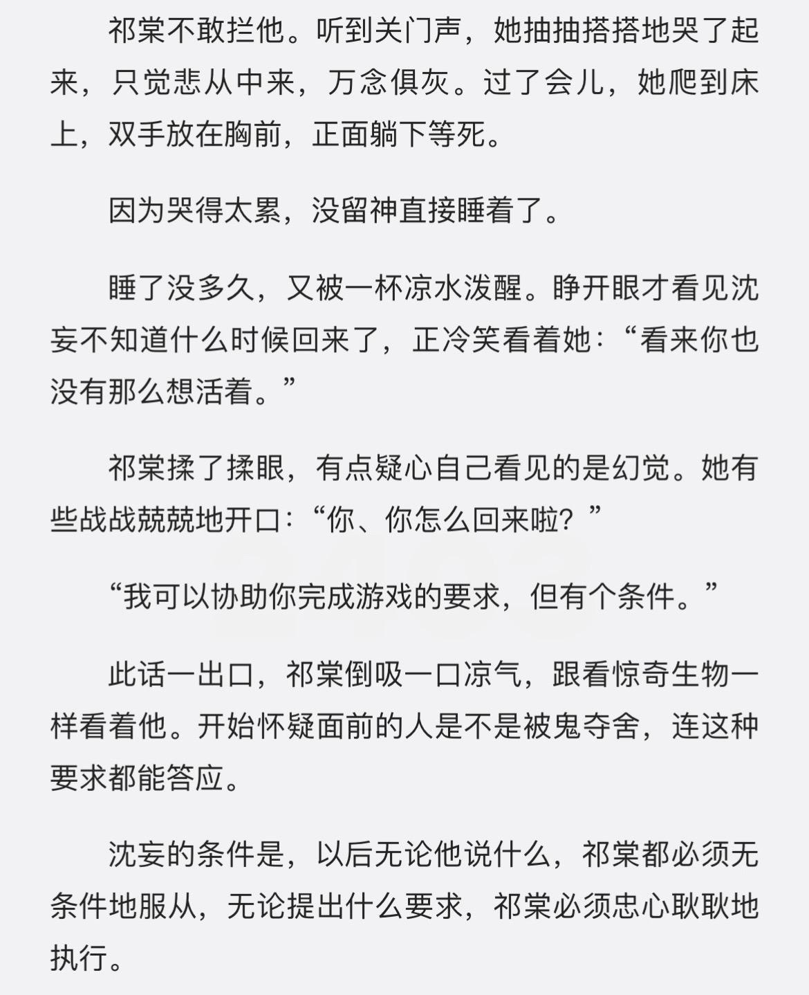 1v1sc | he | 现言都市 | 灵异微恐,强大漂亮冷漠的非人类男主vs换芯儿前花痴换芯儿后正常的穿书女主。爱看恐怖怪谈的有福了,这本着实有点费脑子,一群不知天高地厚的学生前往发生过命案的郊外别墅探险,在这里玩起真心话大冒险的游戏。本质来说是人类女主驯服非人类烈性犬的故事,有点恐怖但是我觉得还能接受,类似于单元每个怪谈是一个单元。共犯那个单元真的有惊艳到我,女主会从一开始害怕男主到依恋他,别人都觉得男主可怕,而女主只觉得他可怜。这种畸形病态的爱太好嗑了