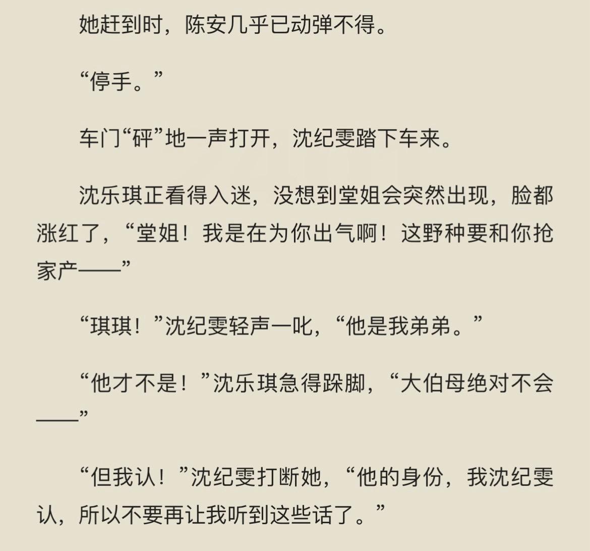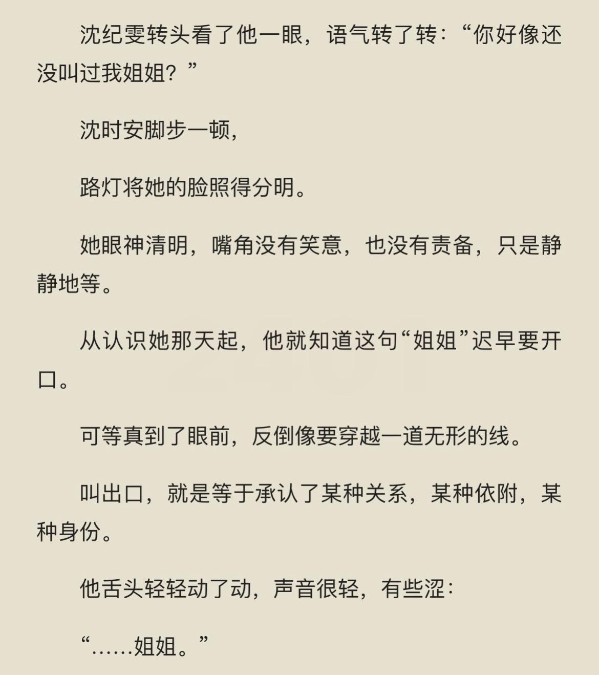 逆序by塑料糖纸 新文完结,1v1s/c/he/姐弟,终于有本够劲的港风文,大小姐X私生子,女强男弱理性与感性的对峙,男主是被认回家的私生子,女主是家族说的上话的掌权者同时清醒理智大女主人设,她太瞩目了,终于看到是女主身边的人一直在找男主麻烦的剧情了,也是因为女主的身份愿意尊重看起来似乎不起眼的男主,吃没资格的醋也是酸酸涩涩的 尽管他后来成为一个顶尖的无懈可击的沈家少爷,但是他还是一个只能仰望姐姐的弟弟,真的可以感受到姐姐是如何一点一点爱上他的,富养长大的不会因为日常照顾而软化,关系点破后,镜头就只聚焦在两