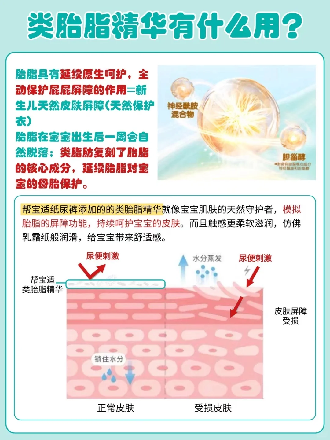 它添加了类胎脂精华💧给宝宝实在的守护。还有左右加宽芯体,就算稀便也不侧漏!