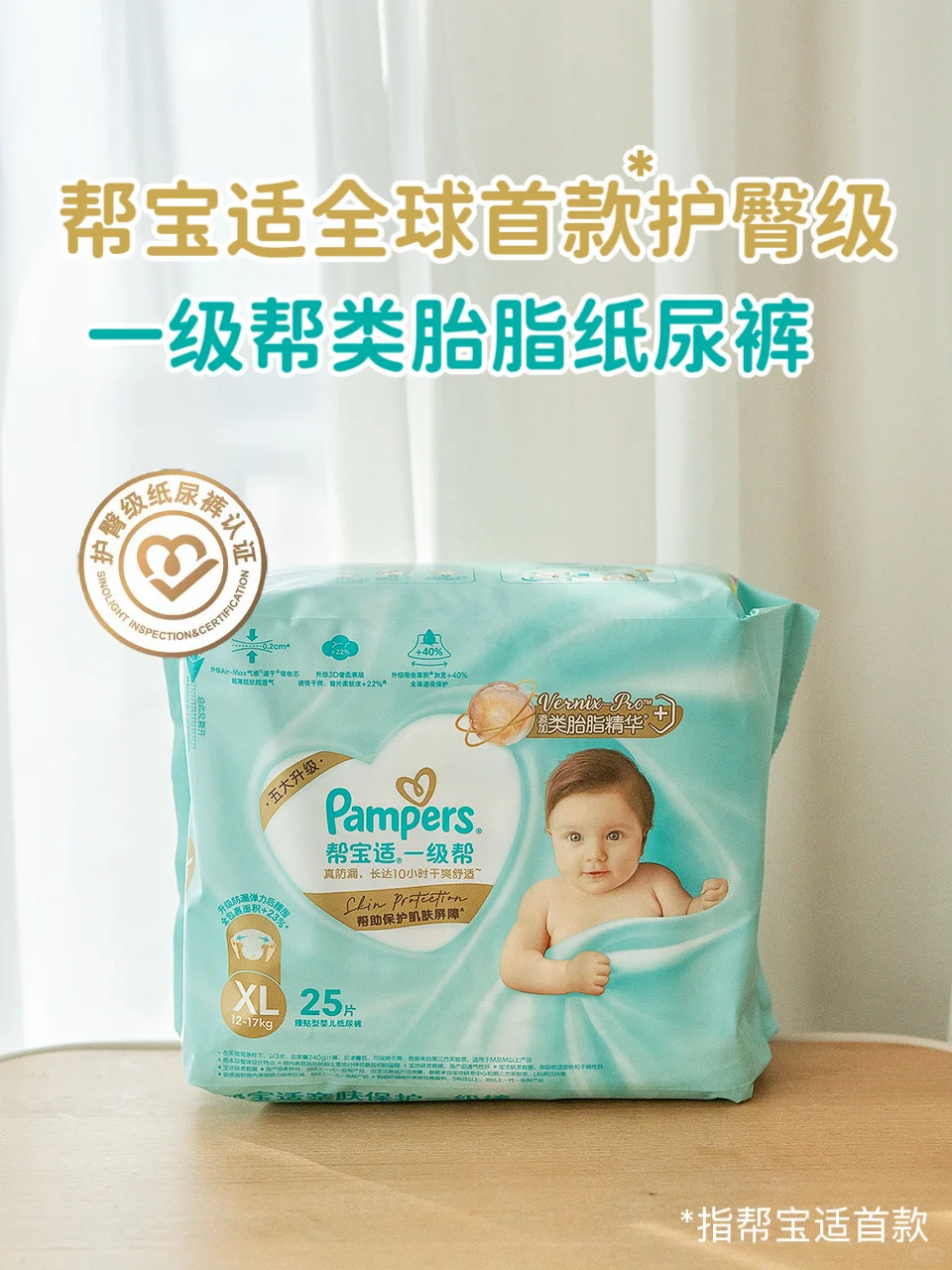 我娃从出生用到现在的无限回购的裤裤——帮宝适护臀级一级帮类胎脂纸尿裤。