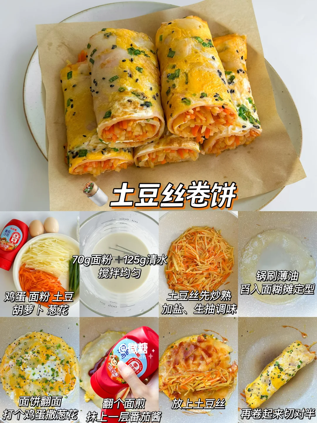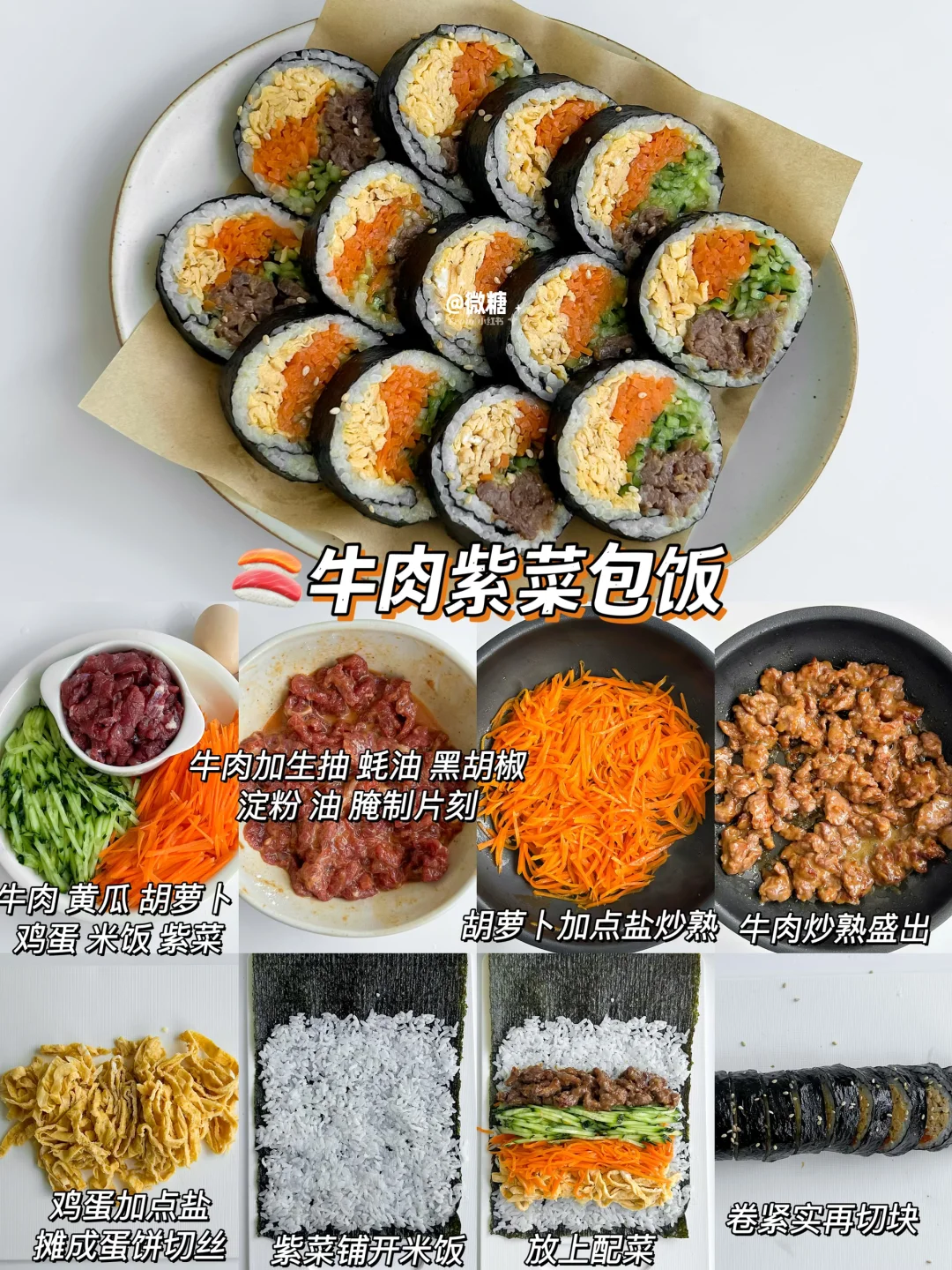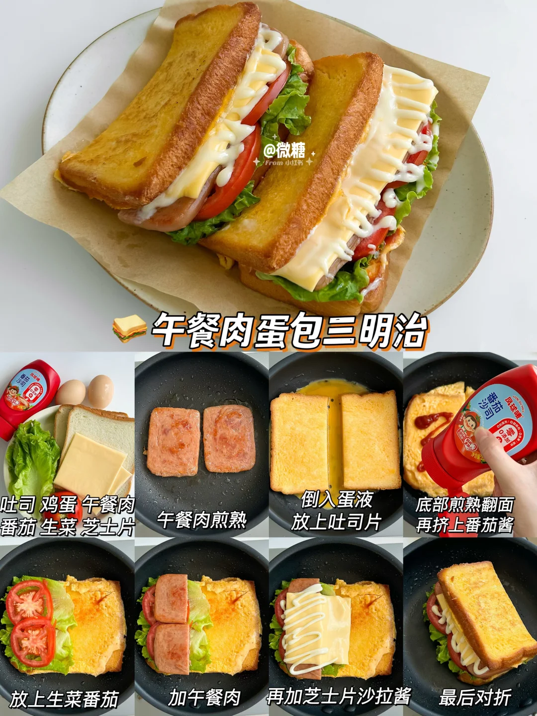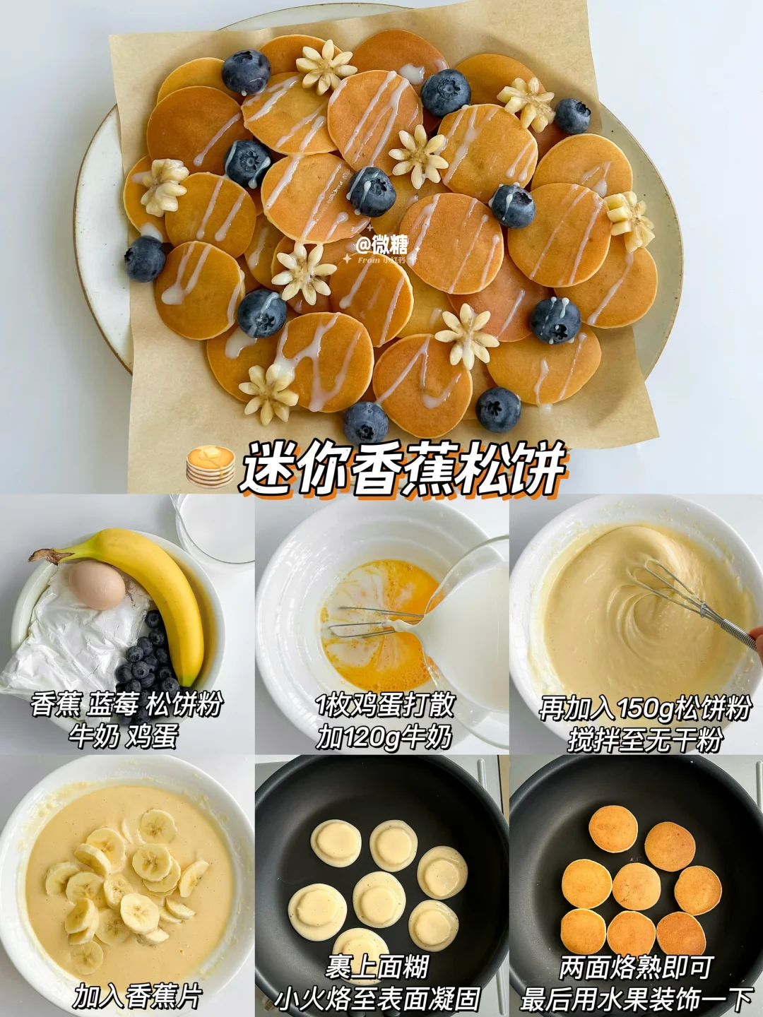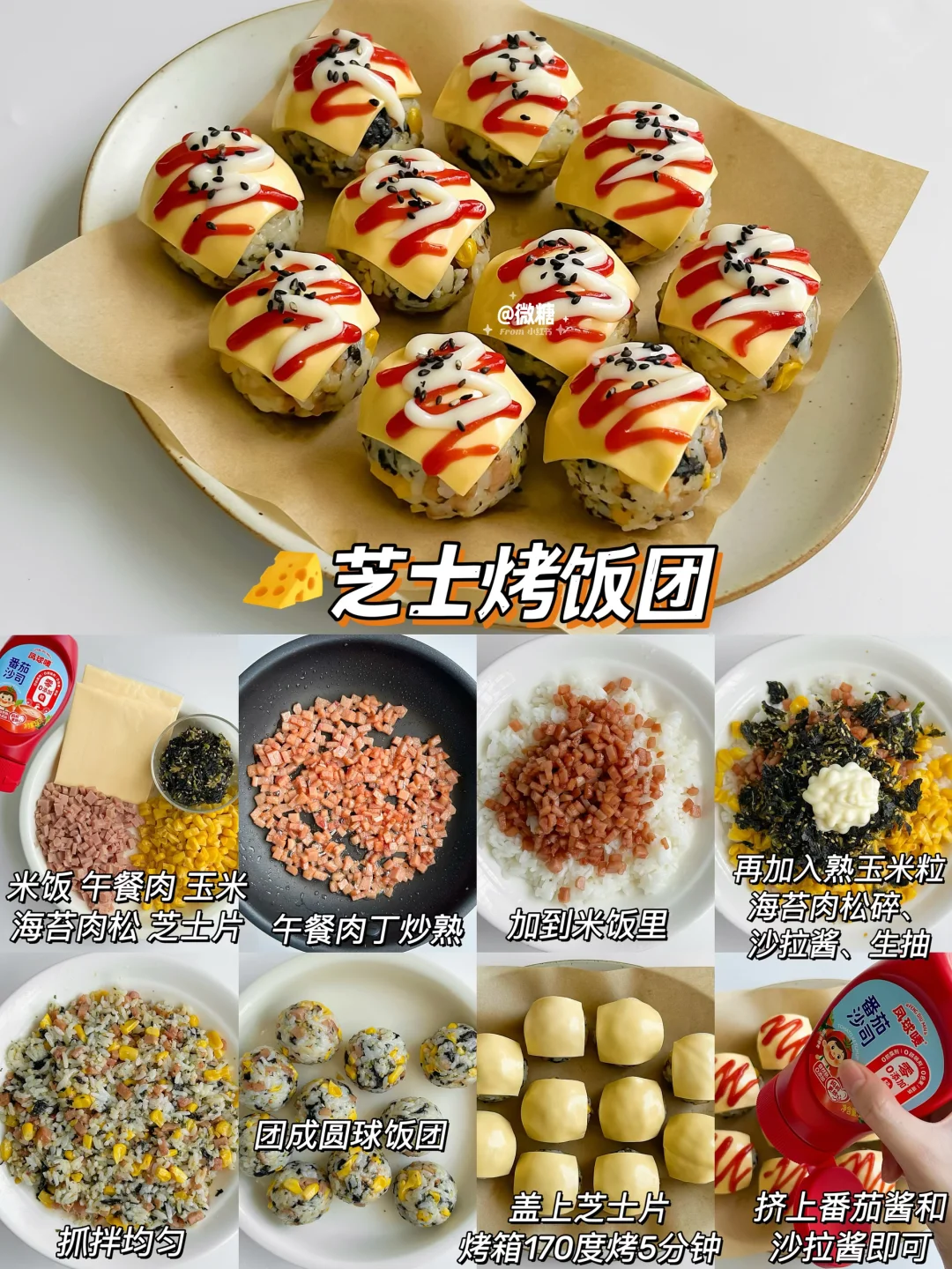 分享6款简单好做的早餐食谱🌞早上起来时间比较紧的话,前一晚备好菜,早上起床火速搞定👌🏻挑食宝宝也光盘,这几款早餐食谱,我家小朋友超爱吃!!每天不知道做什么的,快来试试这样做~专治各种挑食~ 🍣牛肉紫菜包饭 🧀芝士烤饭团 🌯土豆丝卷饼 🥞迷你香蕉松饼 🥪午餐肉蛋包三明治 🍳葱花火腿鸡蛋饼