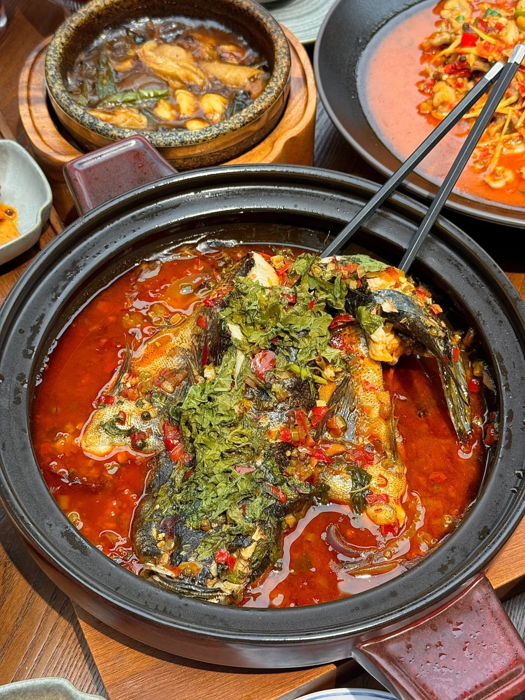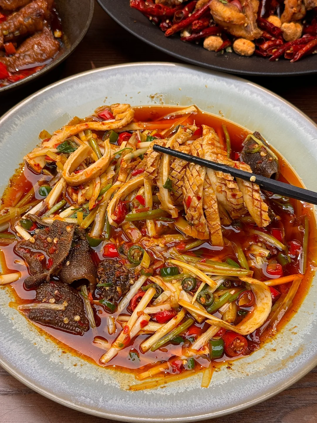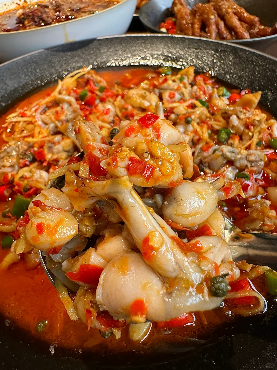 工作日都是座无虚席的!我心目中余杭No.1川菜! 点了一堆都很好吃!盐帮仔姜蛙蛙跳、藿香笋壳鱼、燊海辣子鸡、蒜辣耙鸡脚、老妈猪蹄蹄花! 记得一定要点juju解辣的现熬一整颗秋梨甜汤!! 滋阴补肺好适合秋冬季喝啊!!!