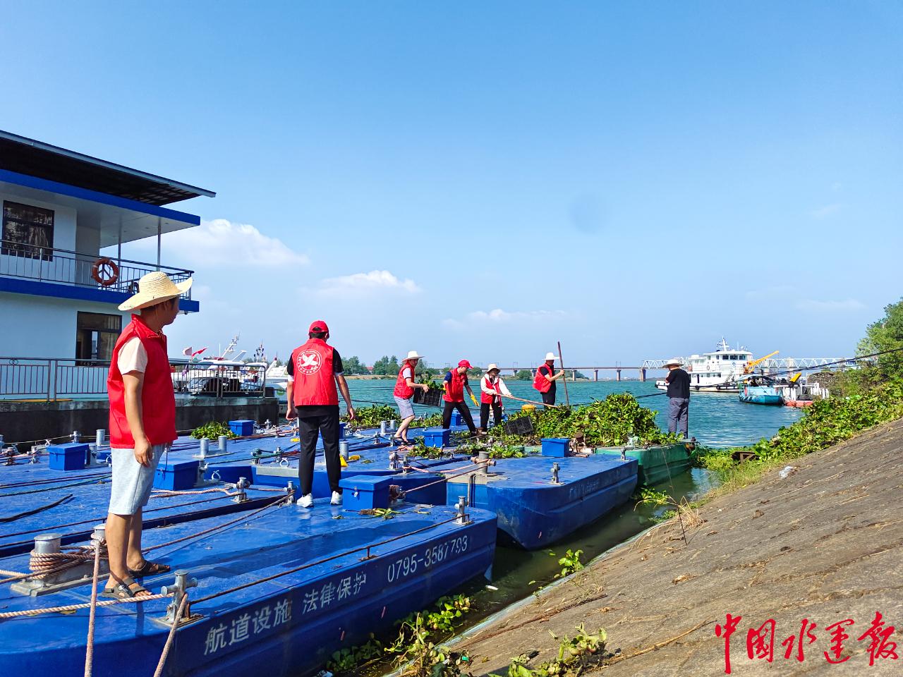 近期,因受天气因素和水体富营养化影响,赣江樟树段部分水域出现水葫芦疯长、蓝藻聚集的情况,破坏河道内的水生态平衡,影响水体景观风貌。面对这一紧急情况,江西省赣西航道事务中心樟树航道所(以下简称“樟树航道所”)迅速响应樟树市委、市政府号召,主动扛起航道管理部门的责任,联合地方海事部门、沿线街道办事处及社区居委会,启动水上污染物打捞专项行动,凝聚多方力量共同打响赣江生态保卫战,以实际行动守护赣江的绿水青山。