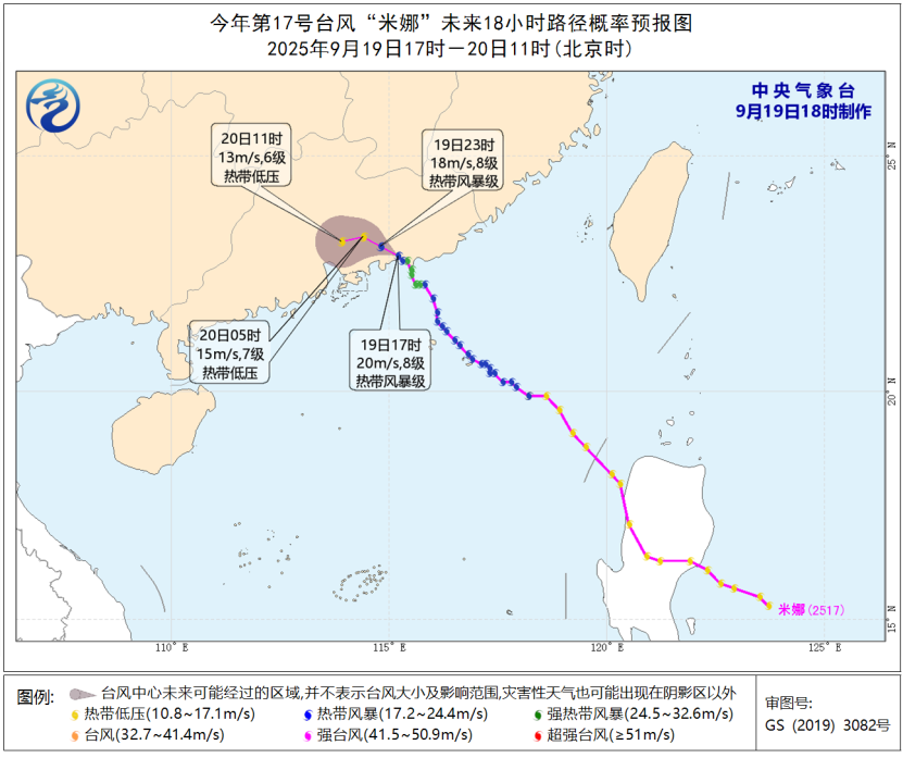 19日,今年第17号台风“米娜”的中心在广东省汕尾市沿海登陆。19日18时,中央气象台发布台风蓝色预警,预计“米娜”将以每小时5—10公里的速度向西偏北方向移动,强度逐渐减弱。