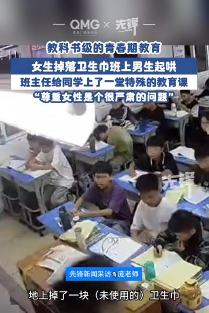 “老师教科书式处理卫生巾起哄事件!”河南周口,班里女生卫生巾掉落被男生嘲笑。班主任给同学们上了一堂特殊的教育课。而这个班级是七年级学生,因在上课前,有名女生掉落一个未使用的卫生巾,结果被班上一些男生看到,就踩踏起哄。 小红(化名)是一个初中的的班主任,她是一个很负责的班主任,很注重孩子们的人品,然而那天她在班级里等着上课的时候发生了一件令她愤怒的事情。 因为第二节是她的课,于是她很早的就到了班级里面打开PPT准备好了上课要讲解的内容,然而就在这个时候,班级里面的一个女生说地上有一片卫生巾不知道是谁的。 女孩的话音刚落,本以为会有人帮忙捡起来,不料这时候全班的男同学竟然都开始了起哄,在那里说“好恶心”,甚至还有男孩直接上去踩了一脚那片卫生巾。 看到这的时候,小红在讲台上十分的愤怒,但也有一些自责,觉得是她作为老师的失败,没有教育好他们所以才会出现这样的情况。 随后上课铃响了之后,小红也没有开始今天的课堂,而是开始给学生们进行了一场生理科普。第一话就直接问孩子们说,每一个孩都是谁生出来,这时候班里面的男同学摸不吭声,紧接着小红重复的又问了一句之后,学生们回复说是妈妈。 这时候小红久就开始进行教育,说孩子在母亲肚子里面的那个器官叫子宫,随后她还把子宫比喻成“孩子的宫殿”来进一步的解释。说他们还是小宝宝的时候,所需要的营养物质的都是由它给予的。 而且如果没有孩子的话这个子宫里面的东西就会慢慢地脱落,随后废弃的东西就会随着母亲的血液排出体内,在全部讲完之后,小红问同学们说还觉得恶心吗? 这时候很多男孩子已经知道了自己的错误,默默地地下了头,随后系小红又说到人与人之间的尊重相互的,所以要尊重每一个人,最后这一场生理教育以“尊重女性,保护妈妈”的口号结束。 面对现在很多人对于隐私的事情都觉得尴尬选择避而不谈,所以才会造成今天的这个局面,那么这名老师能够孩子们讲这么多让孩子明白值得被夸赞。 (信息来源 :新华社 2025-09-18)