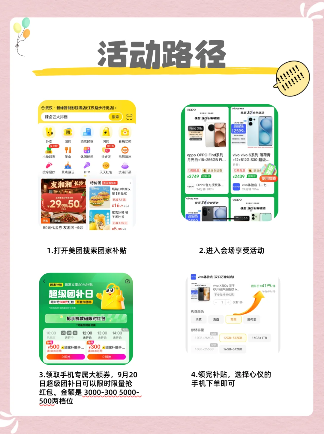 1️⃣ 9.20早10点~晚9点准点蹲红包!2️⃣ 每小时补券,定闹钟抢3000-300/5000-500大额券!3️⃣ 美团APP🔎“团家补贴”就可以直达活动页面4️⃣ 选好机型+叠券+下单,坐等30分钟收货!