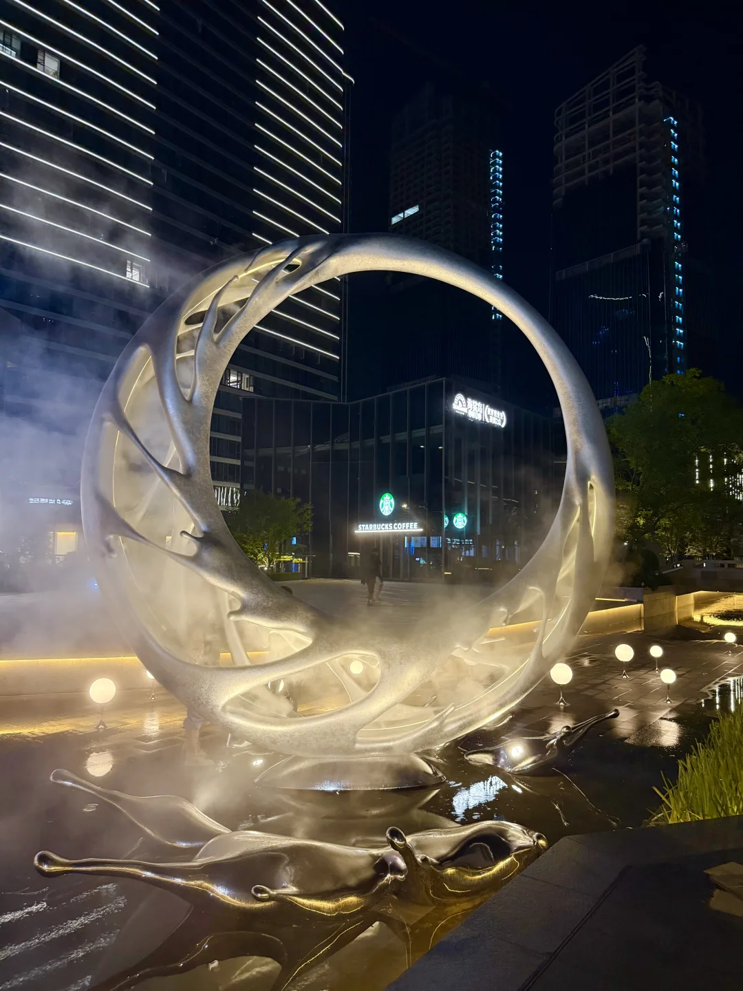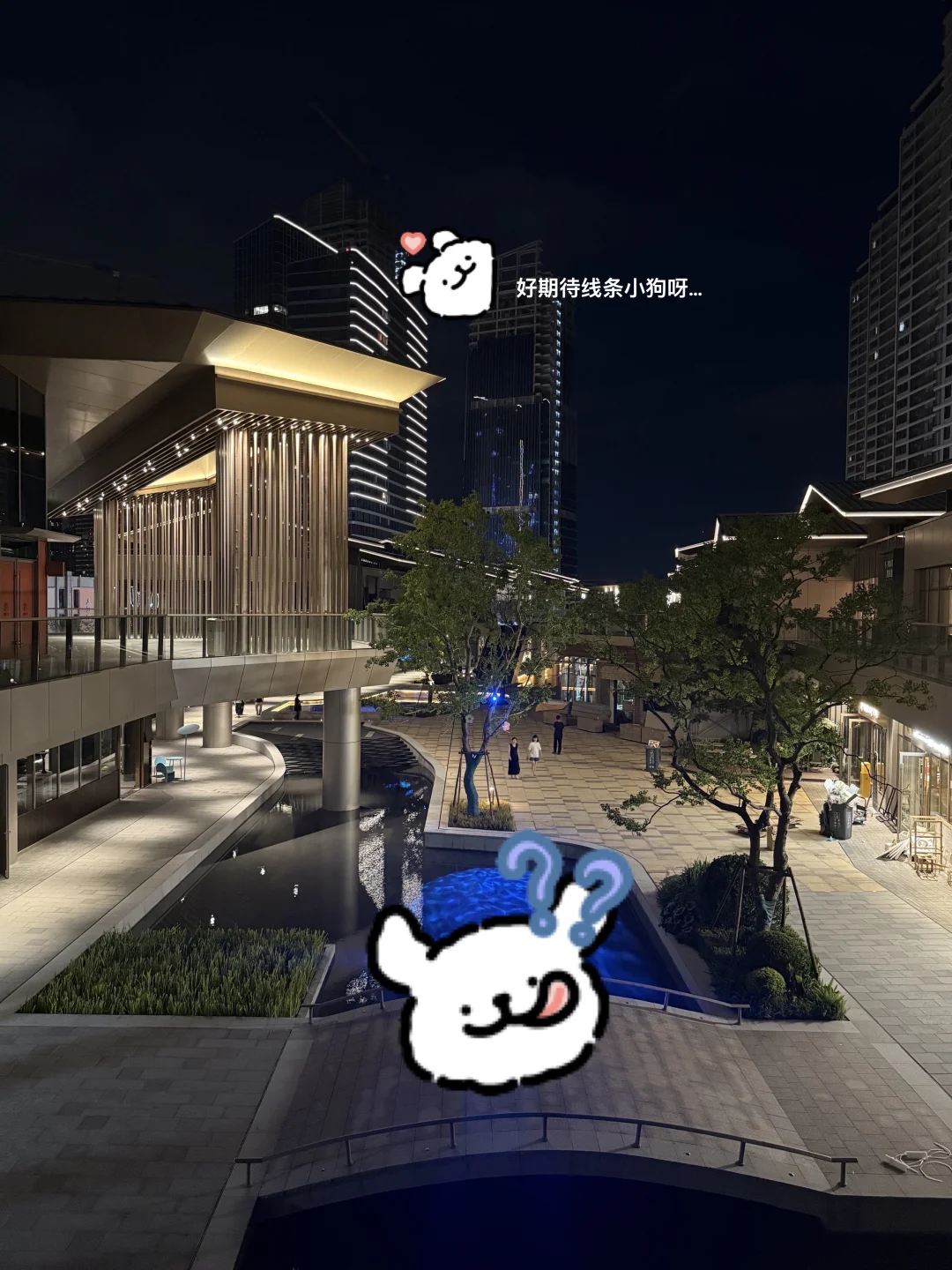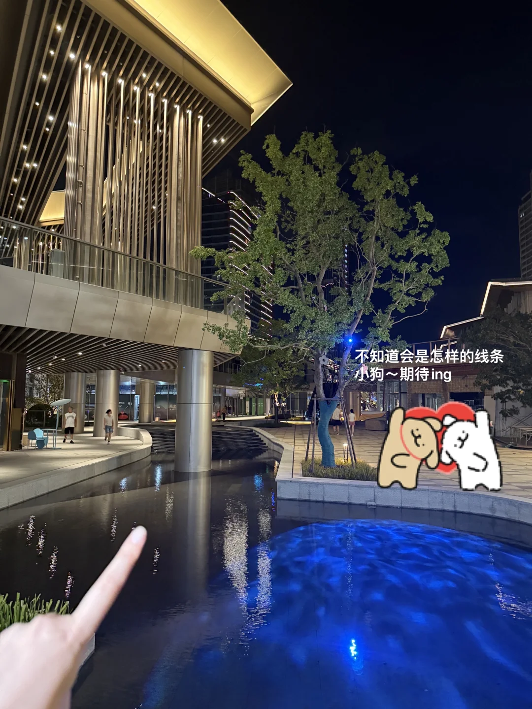 听说线条小狗杭州美陈首展要在秦望水街开展啦!!今天在附近吃饭和朋友偷偷先来康康! 不知道到时候会是什么样的造型?开展了一定要来再打卡! 富阳新的街区、很漂亮!!中心广场的【水中掬月】有点太美了!!晚上敲出片!! 边上也有好多店铺,装修也很有特色!像“好宽”、“爷爷不泡茶”……好吃好喝又好拍👍 听说9月30日就正式开街了 好期待呀❤️