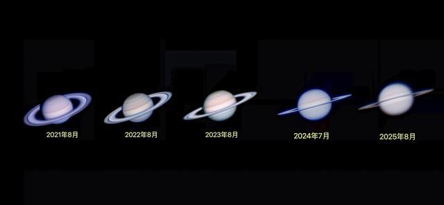 土星围绕太阳公转一周的时间为29.46年。在30年内,土星光环的倾角有周期性的循环变化。比如,1995年5月22日,土星光环倾角为0°,光环“消失”。2003年4月7日,土星光环倾角最大,约负27°,公众可看到光环的南面(下面)。2009年9月4日,土星光环倾角为0°,光环又“消失”。2017年10月17日,土星光环倾角最大,约27°,公众可目睹的光环的北面(上面)。2025年3月24日,土星光环倾角为0°,光环再“消失”。因此,如果有人在30年内,借助天文望远镜拍摄了一张土星相片,通过土星光环的倾角状况,可大致估算出他在何年何月拍摄的。