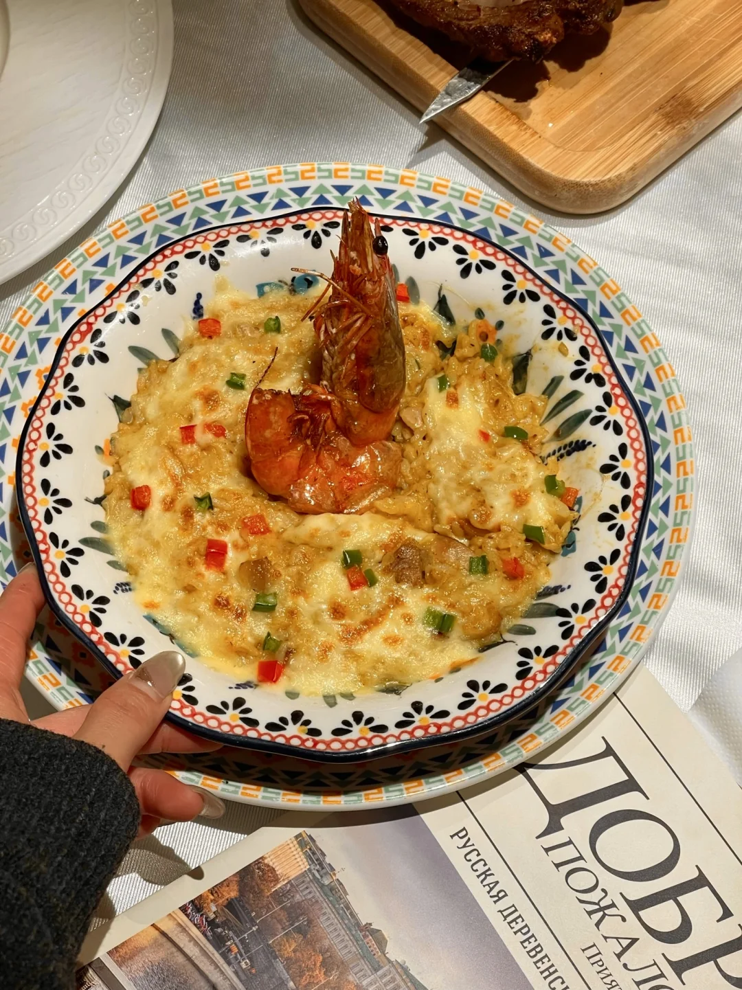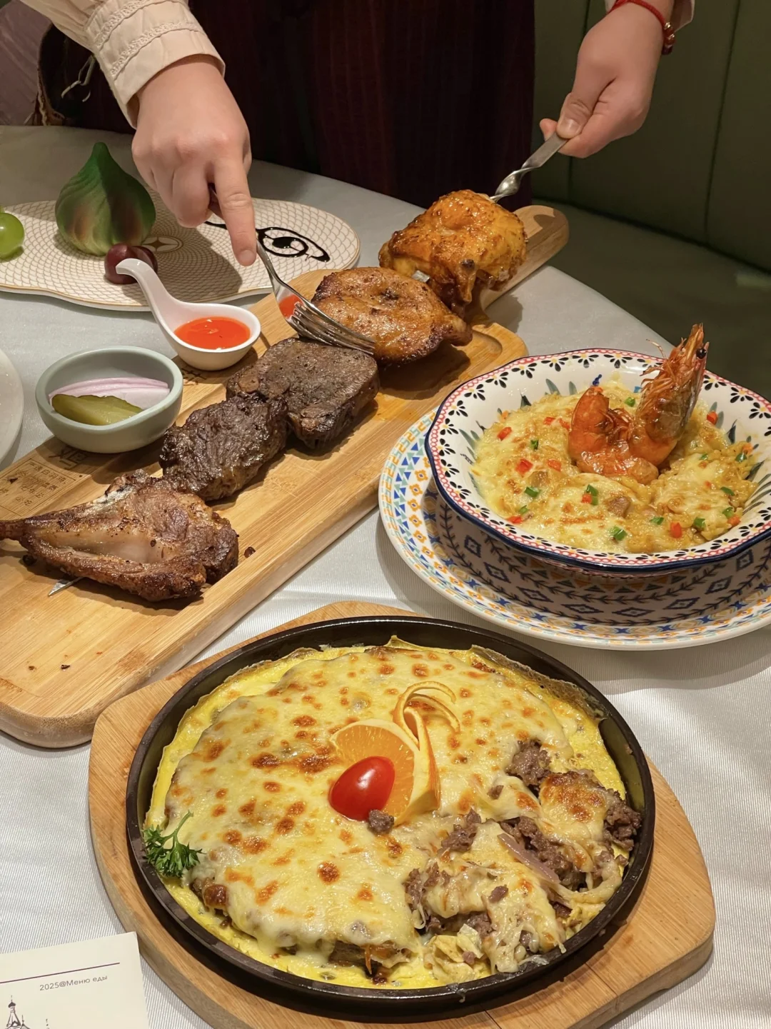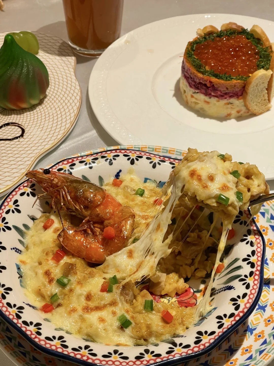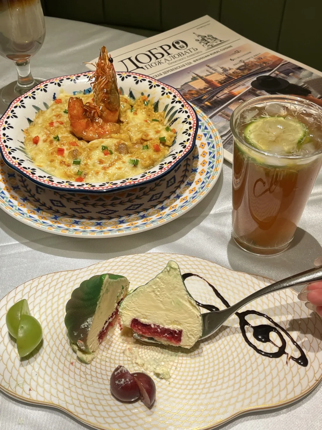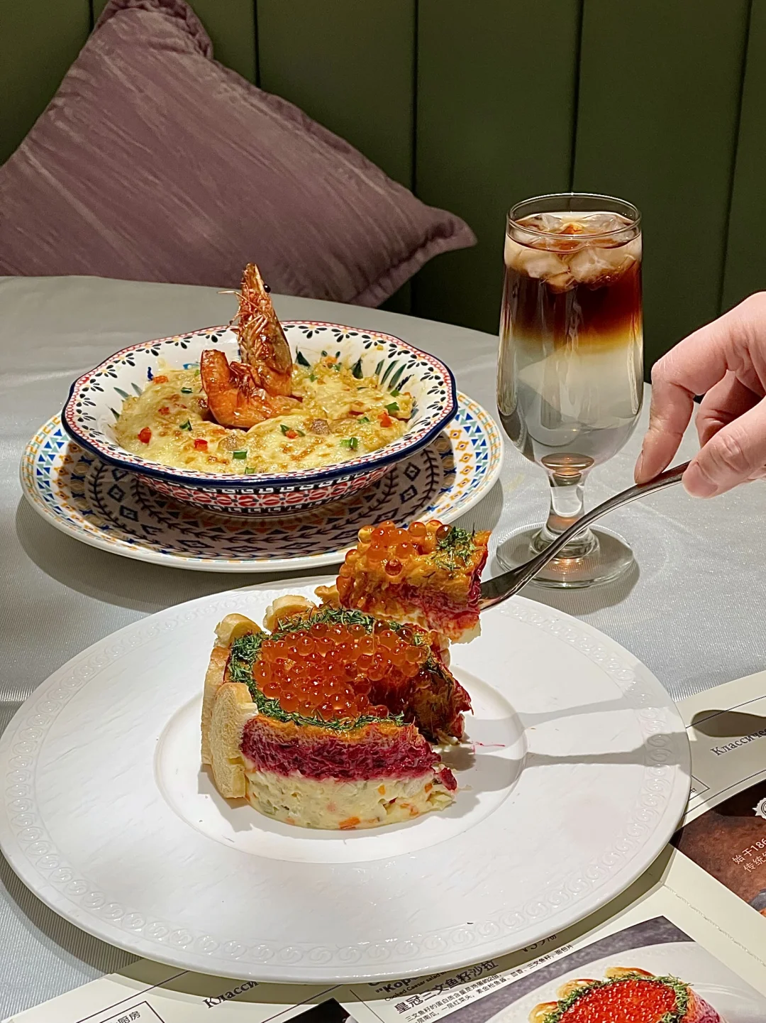 一进门,不说还以为我出国了😭 好多俄罗斯人在这吃饭🇷🇺餐厅风格好俄罗斯,现场还有驻唱表演🎤去不了俄罗斯就来俄士吧! 推荐几道好吃不踩雷的菜给大家,好看又好吃! 皇冠三文鱼籽沙拉🍣咖喱大虾焗鸡肉饭🍛普京焗肉饼、克里姆林穹顶慕斯🍰羔羊小战斧!