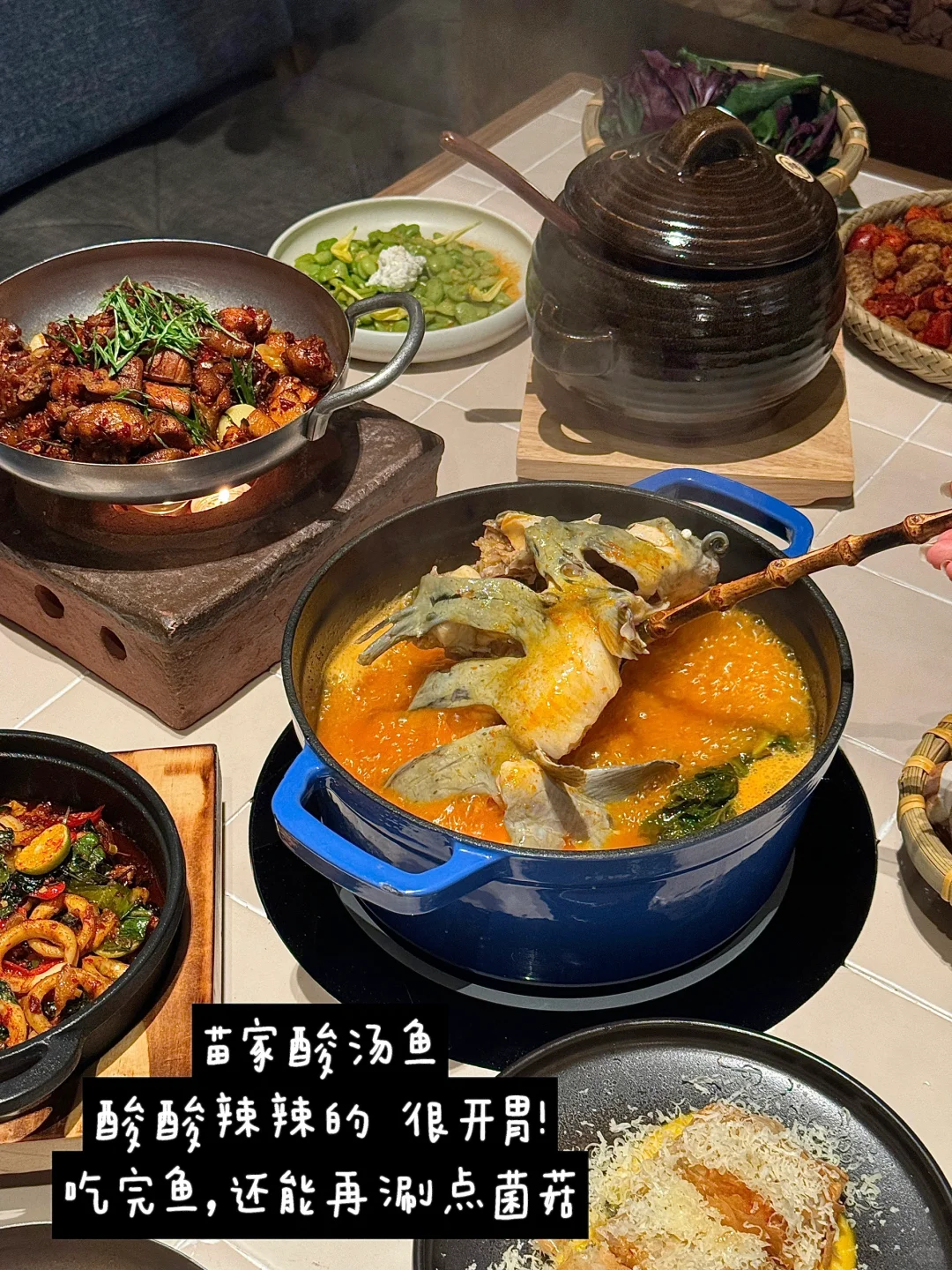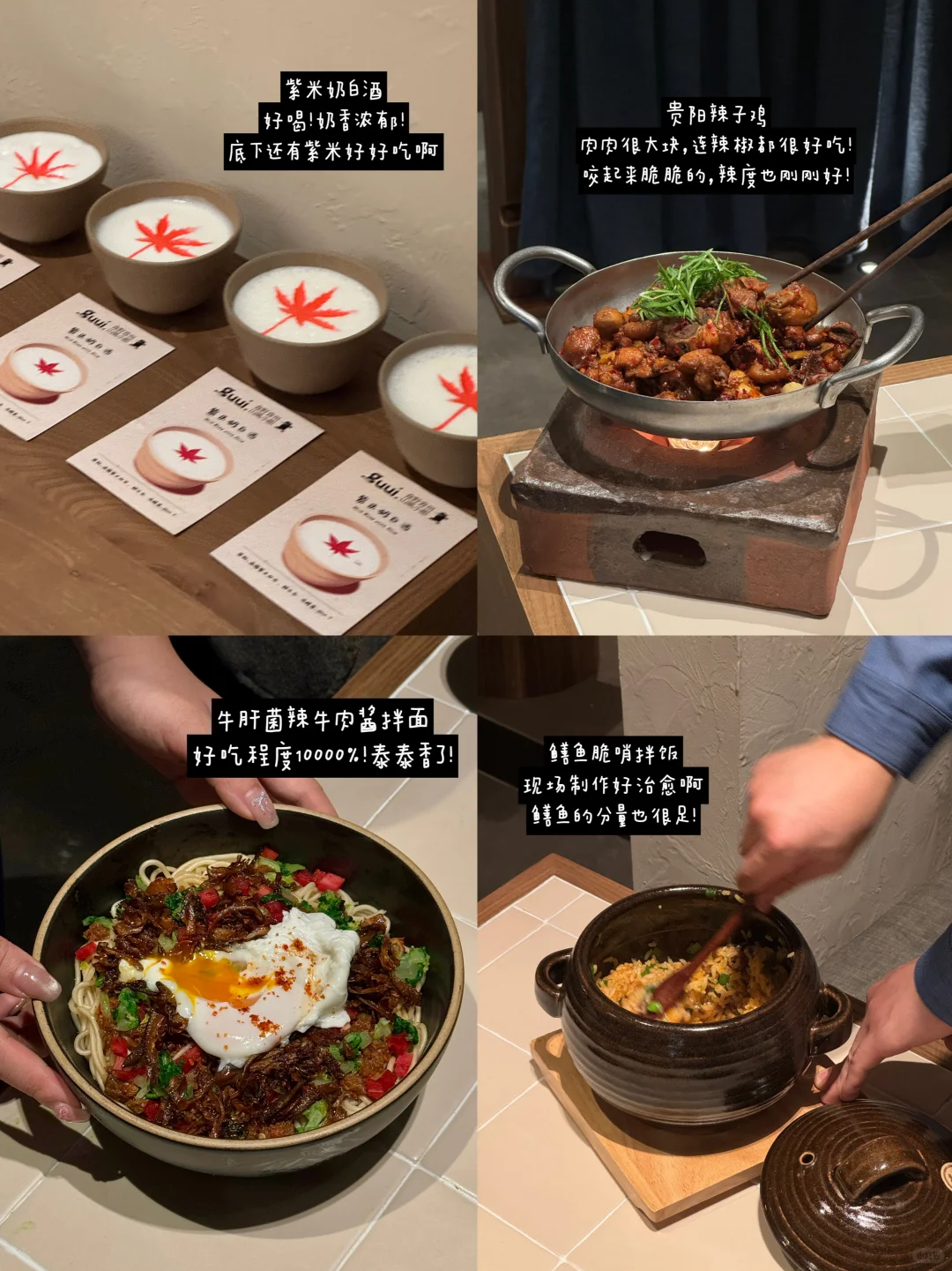 没想到杭州刚开业没几天,我已经连吃四顿了!!! 真的好好吃啊🤤心目中云贵川bistro前三~ 盲点了一堆都很好吃,强烈推荐贵阳辣子鸡🌶️鳝鱼脆哨拌饭、牛肝菌辣牛肉拌面🍜苗家酸汤鱼、紫米奶白酒🍶千层小米渣!!!