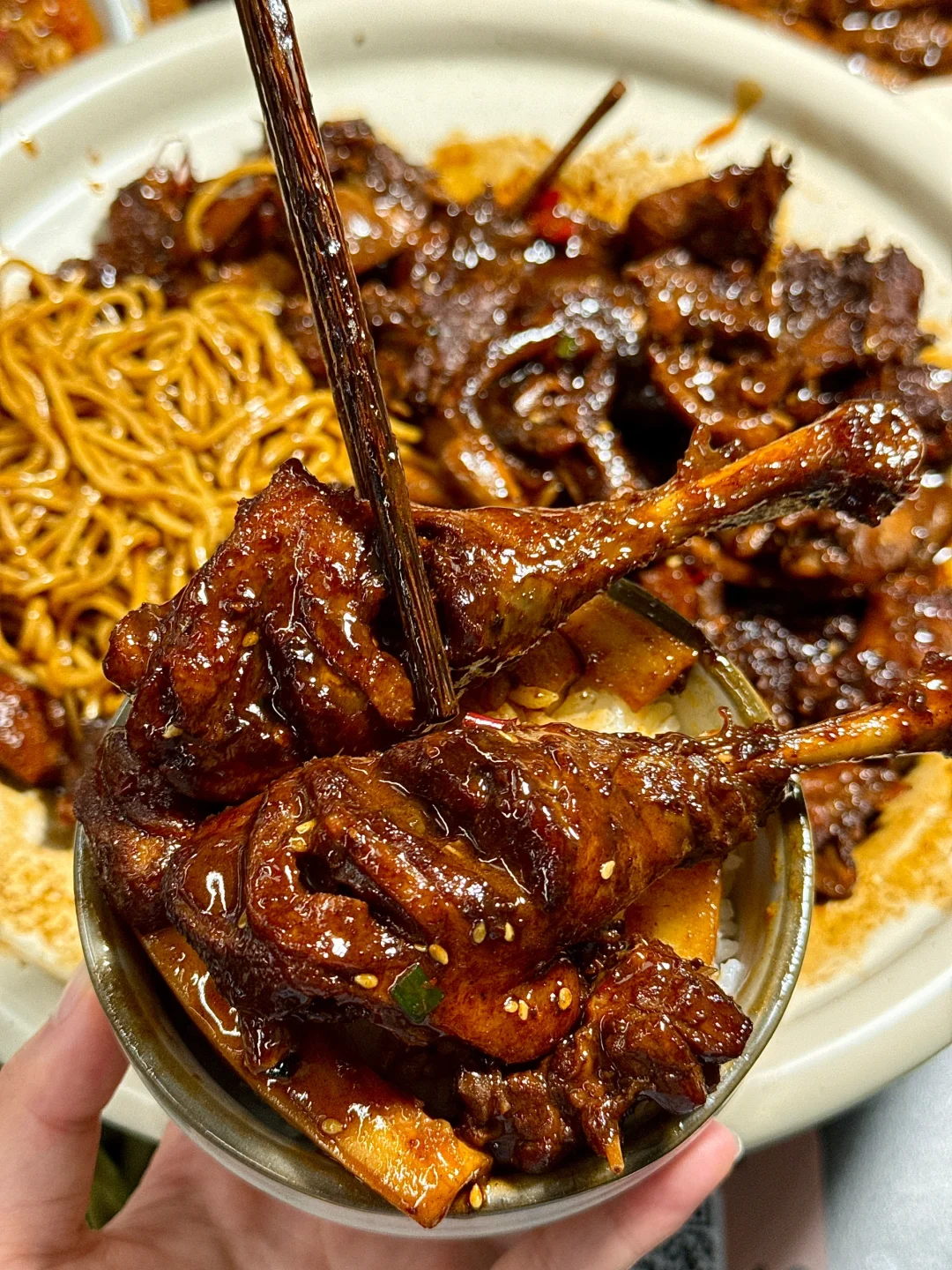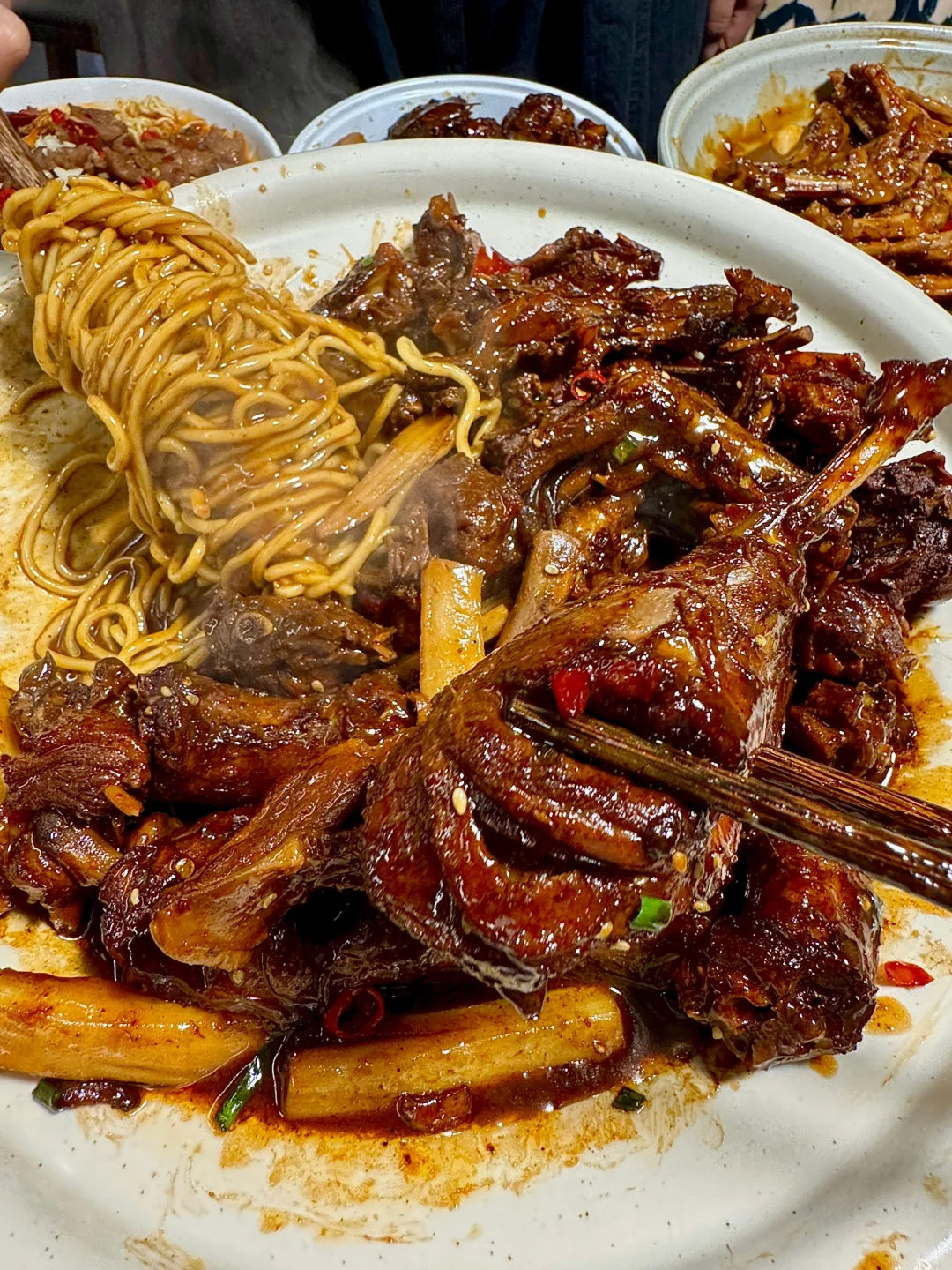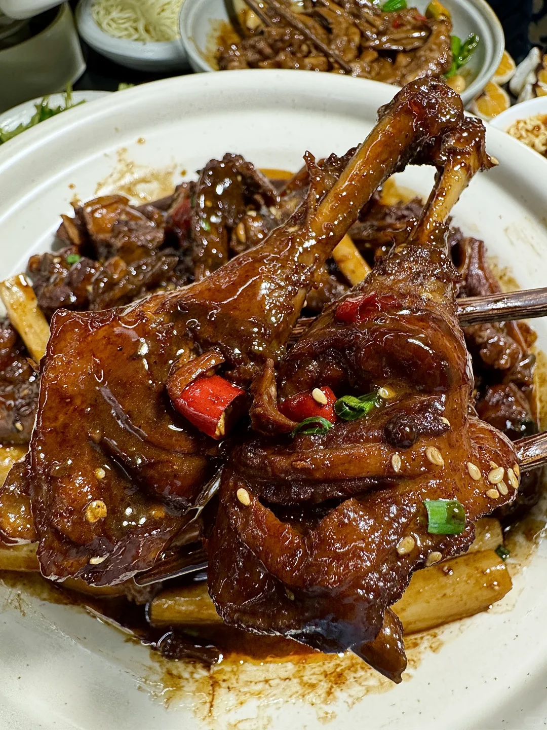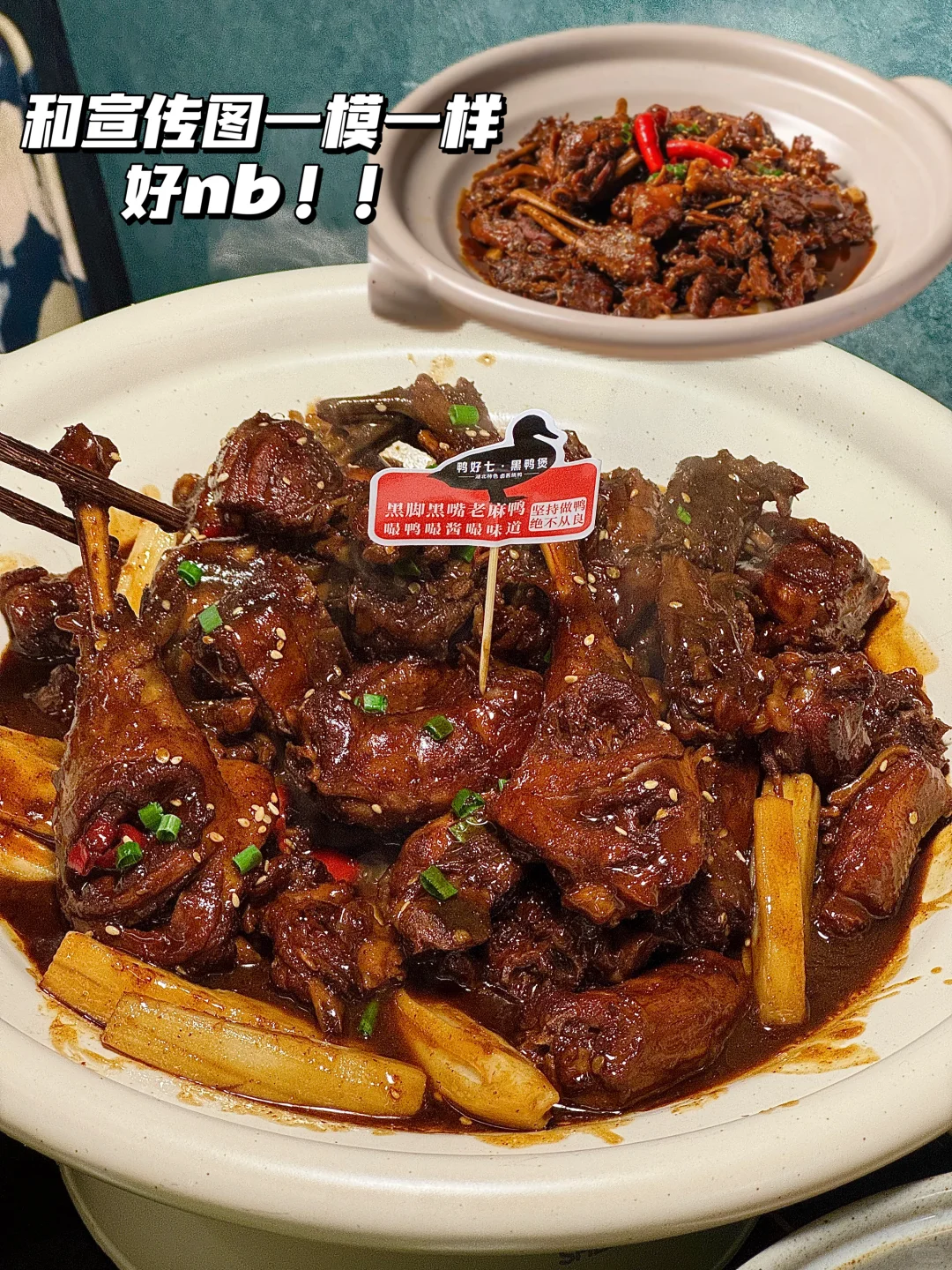 上海终于开了😭😭😭就在人民广场! 吃到了贼贼好吃的黑鸭煲!!! 每一块鸭肉都裹满了甜辣口的酱汁,记得一定要加一份武汉热干面🍜好吃加倍!辣度也是刚刚好,不会是那种死辣死辣的🥵 还有香糯鸭掌爪、烧椒牛肉煲都很好吃!