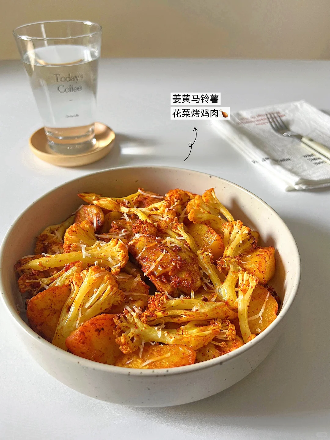 我称之为姜黄马铃薯花菜烤鸡肉🍗