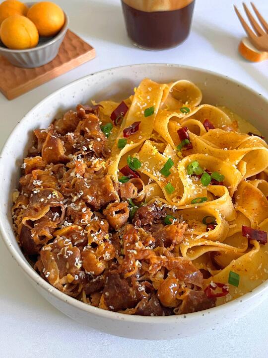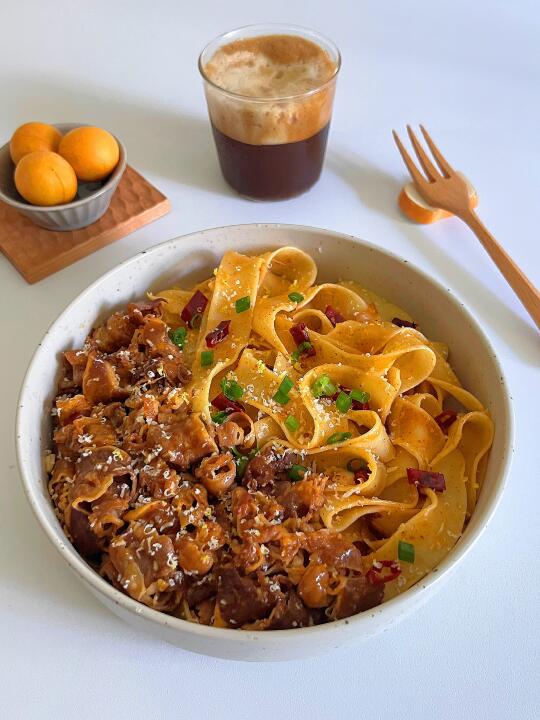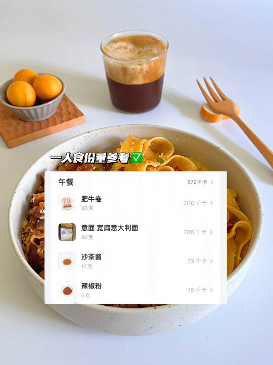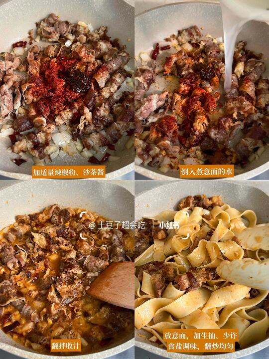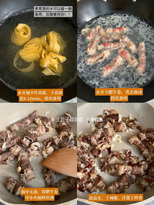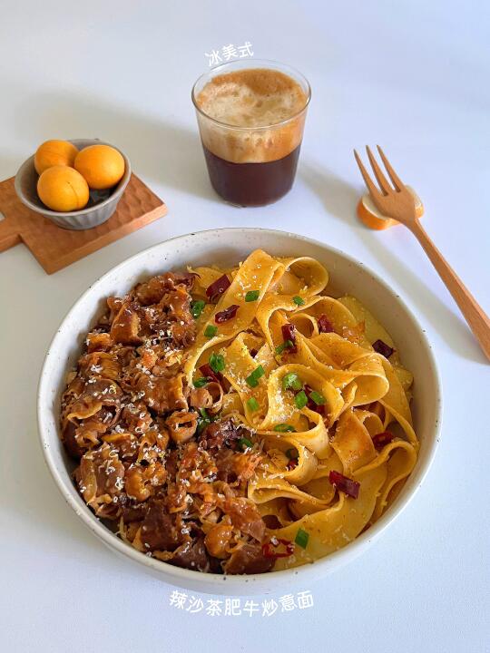 🥩 主要食材:意面、肥牛、沙茶酱、洋葱、大蒜/干辣/辣椒/小葱