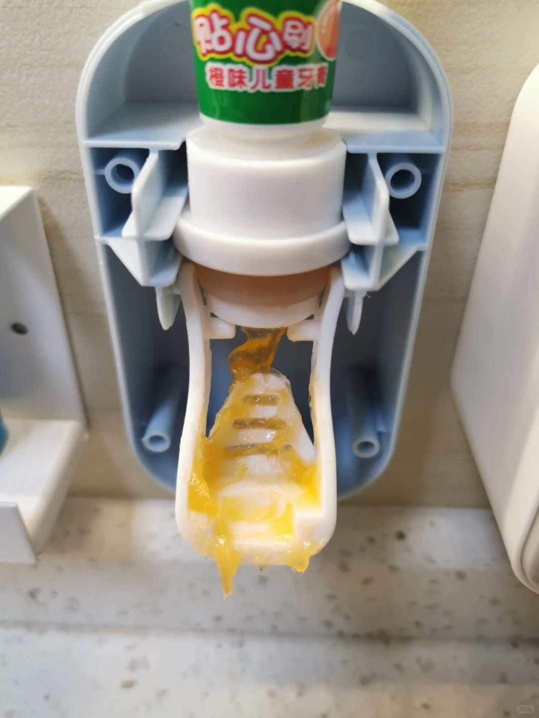 牙膏比较粘,每次挤出来的时候,肯定会将牙膏带出来,就会导致蹭的到处都是,时间长了,还容易招蚂蚁,非常的不方便。