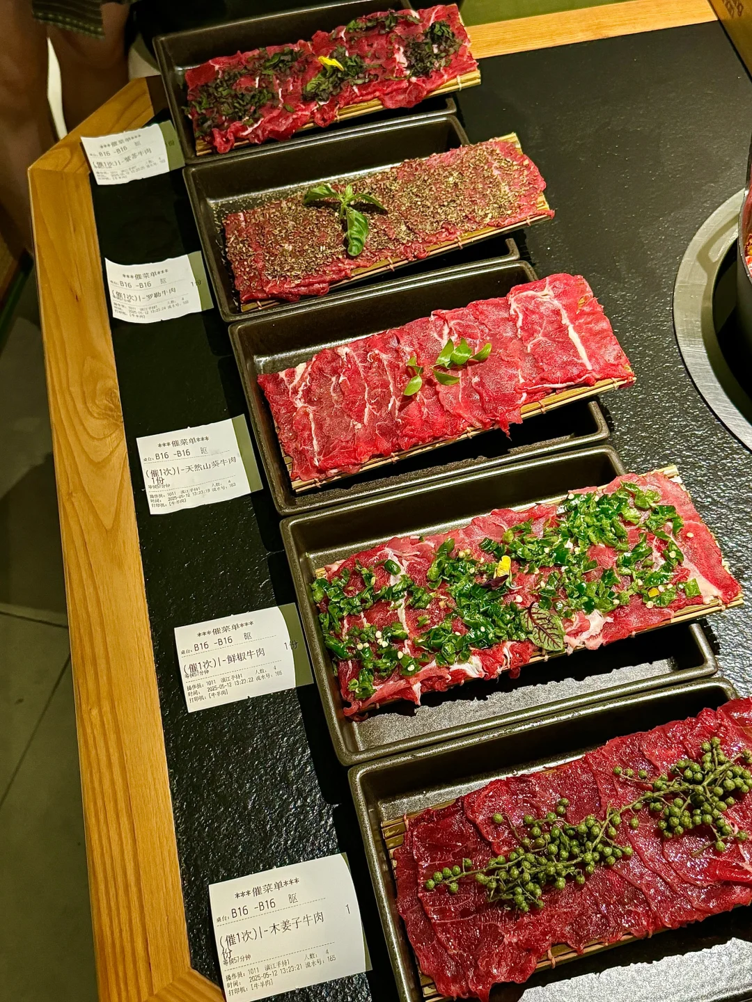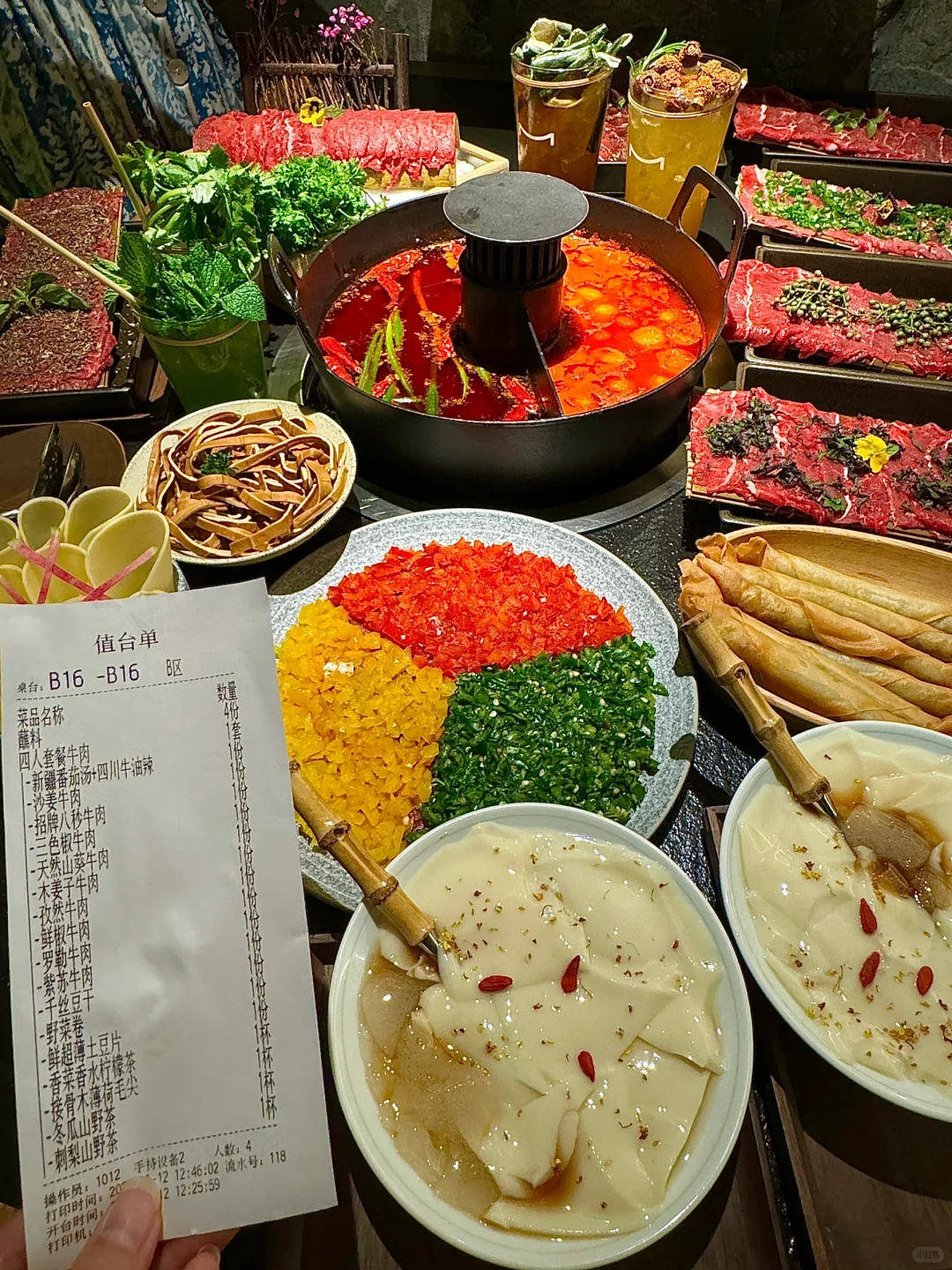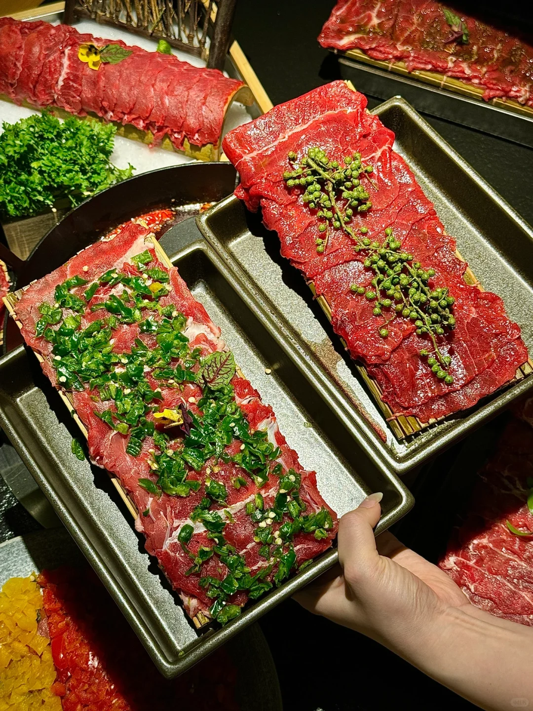 滨江天街新开的!森系火锅真的好好吃啊!! 人均100就能吃到新鲜现做的山野火锅🍲真的牛! 各种甜品饮料都现点现做好喝又好看嘞! 牛肉更没得说!肉质巨巨巨新鲜! 推荐招牌八秒牛肉、木姜子牛肉、紫苏牛肉、三色椒牛肉、罗勒牛肉!都很好吃😋!! 是我愿意带朋友去无数次的店没错了!!!