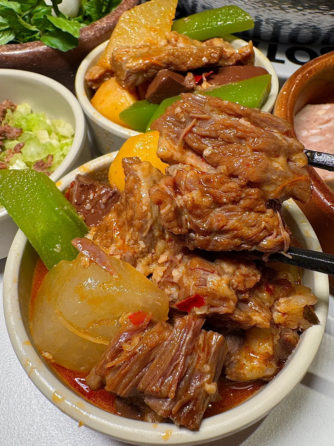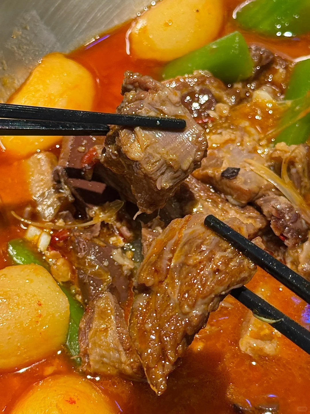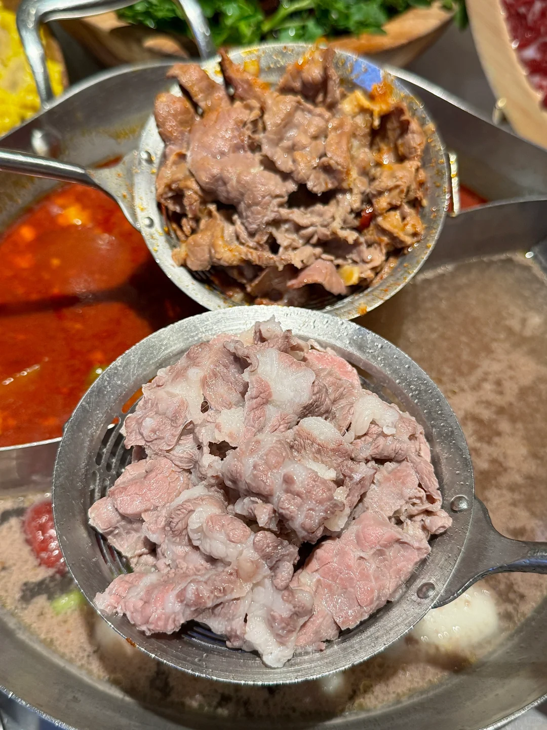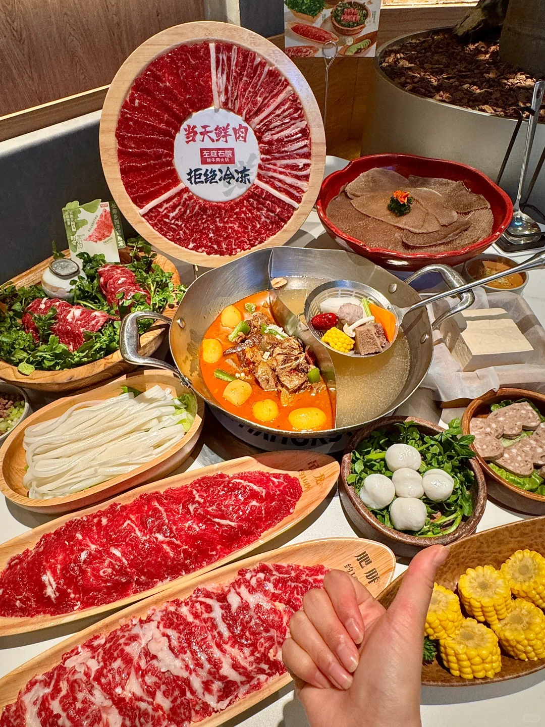 鲜牛肉火锅它家必须榜上有名!已经吃了好多年了! 不愧是有自家牧场,自家养牛自家屠场! 拒绝冷冻!真的吃得出高品质😭 最近新上了高山土豆牛腩锅锅底🐂神农架土豆+牛腩现煲!一定要试试! 上桌后先吃再加汤🥣牛腩鲜嫩软烂,土豆粉粉面面! 牛魔王拼盘也是必点!一盘能吃到三种部位的肉🥩 肉质纹理很优秀,涮个10秒蘸上麻酱太过瘾了!