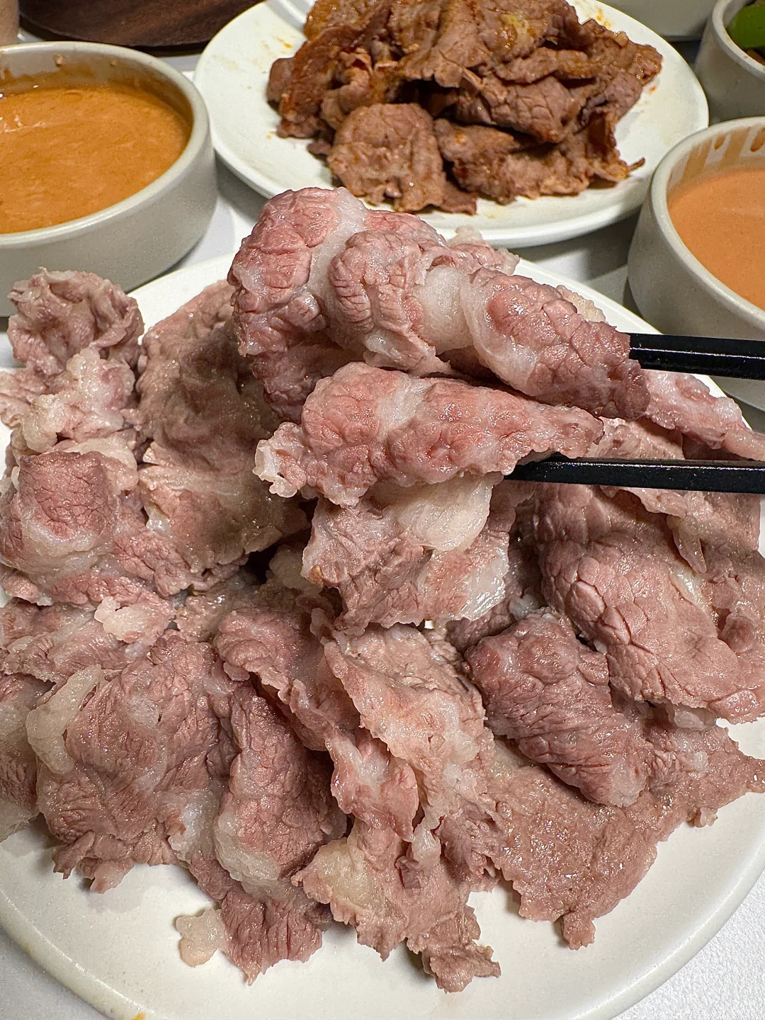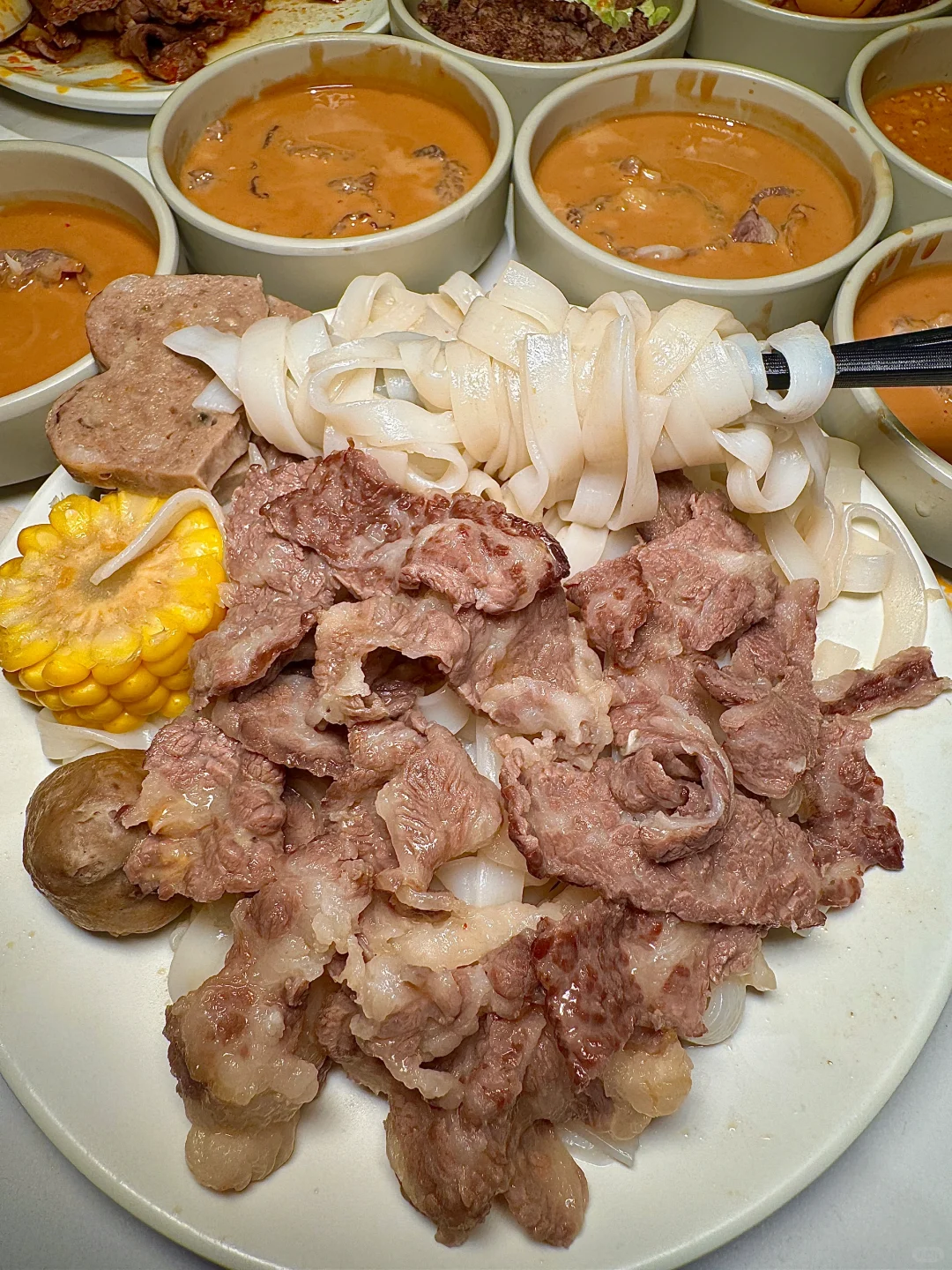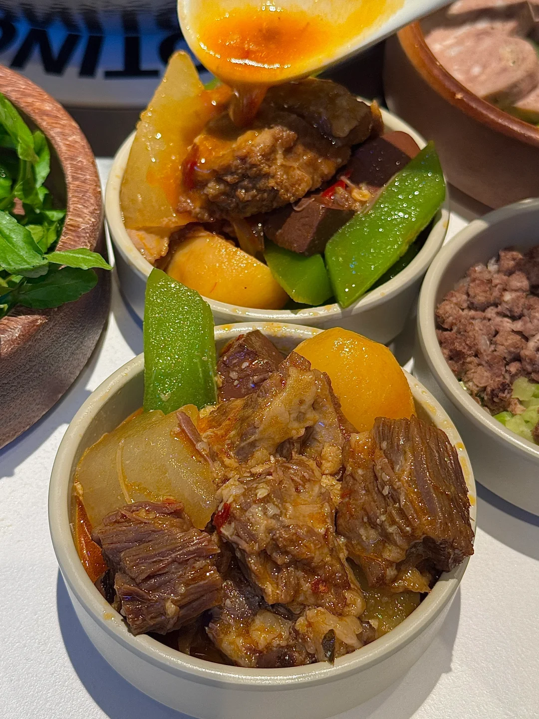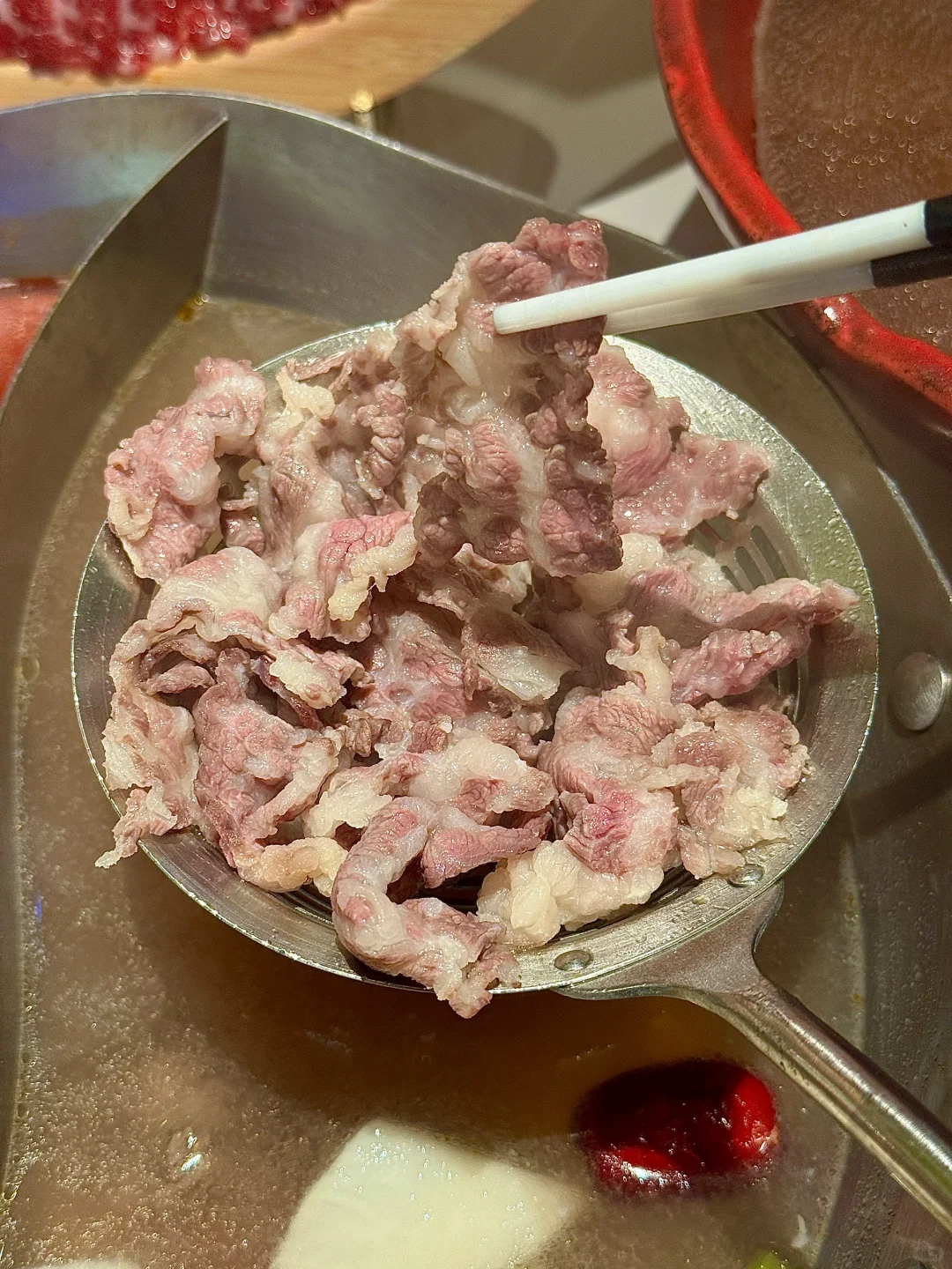 鲜牛肉火锅它家必须榜上有名!已经吃了好多年了! 不愧是有自家牧场,自家养牛自家屠场! 拒绝冷冻!真的吃得出高品质😭 最近新上了高山土豆牛腩锅锅底🐂神农架土豆+牛腩现煲!一定要试试! 上桌后先吃再加汤🥣牛腩鲜嫩软烂,土豆粉粉面面! 牛魔王拼盘也是必点!一盘能吃到三种部位的肉🥩 肉质纹理很优秀,涮个10秒蘸上麻酱太过瘾了!