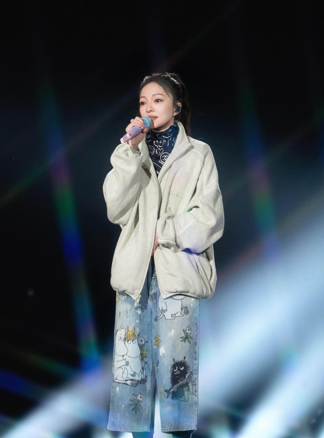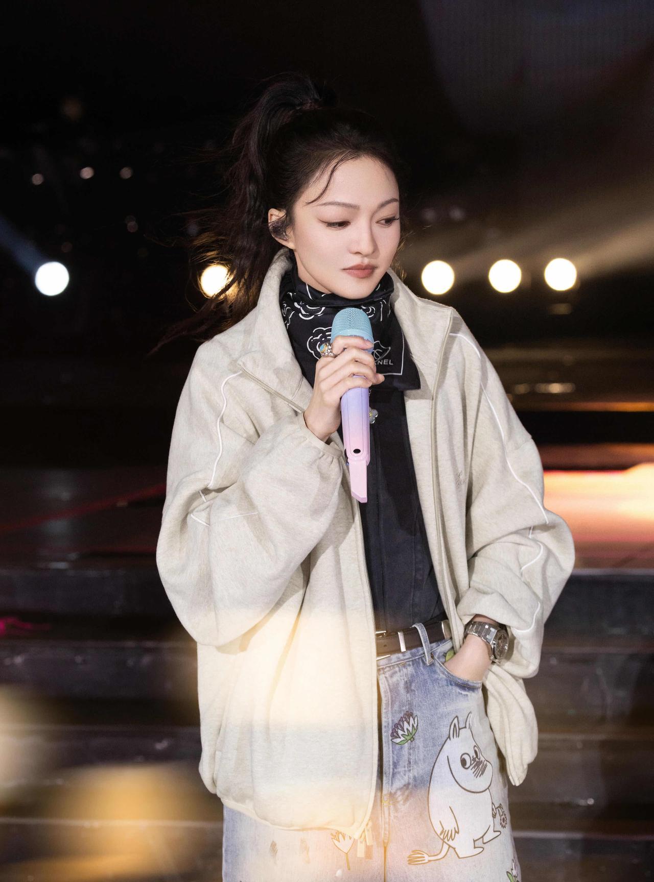 被张韶涵种草了涂鸦牛仔裤,童趣满满很减龄! 有一些可爱的卡通图案,充满童趣超减龄。八分的阔腿裤设计慵懒随意,因为天气比较冷,叠搭了一条黑色的长袜,和黑色的内搭相互呼应,减 龄又好看。