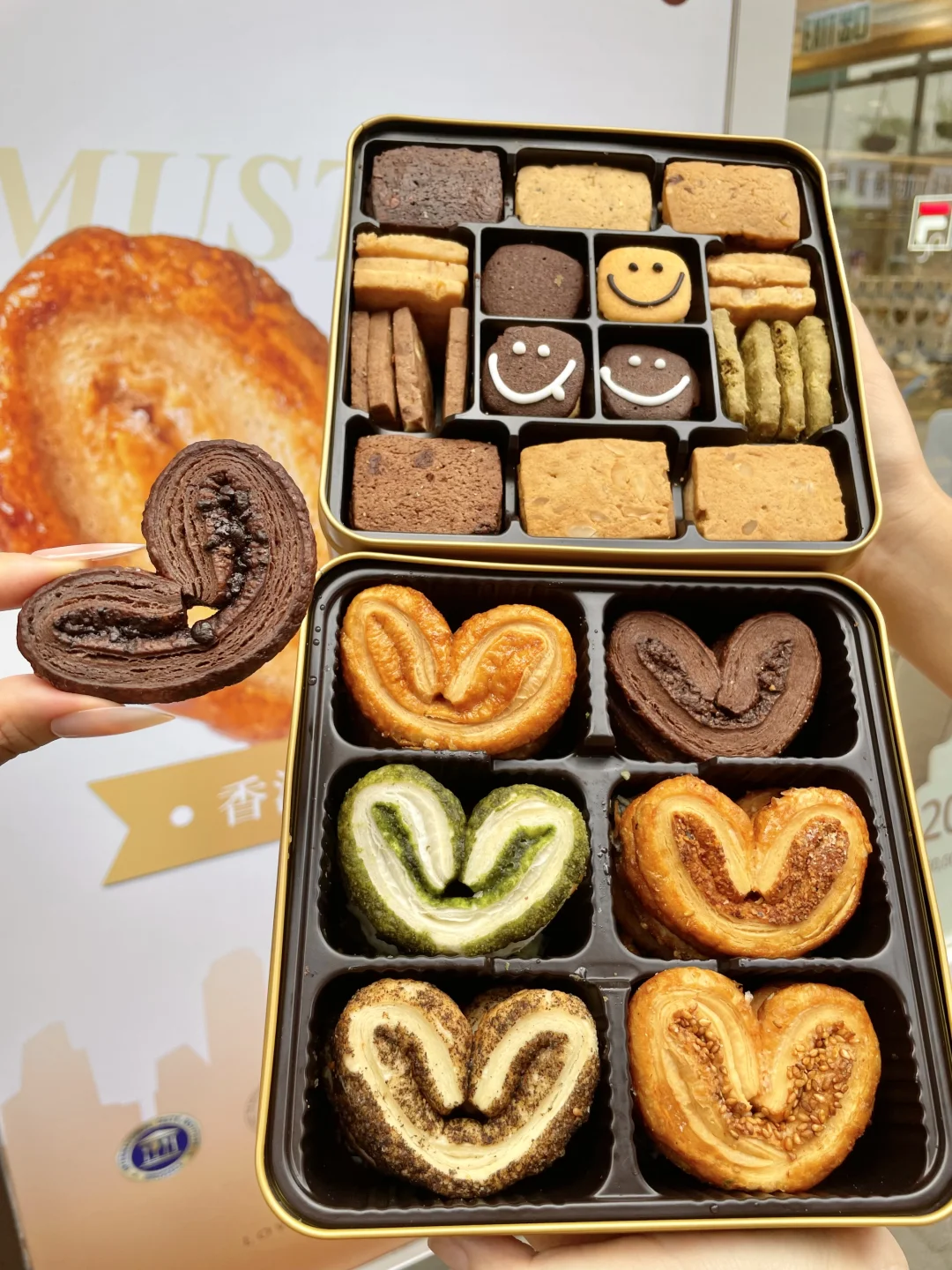 (离港前必带的超好吃招牌蝴蝶酥手信,黄油香味好浓郁,店里每个味道都可以试吃,是香港很出名的糕点品牌,买回去送礼很不错)