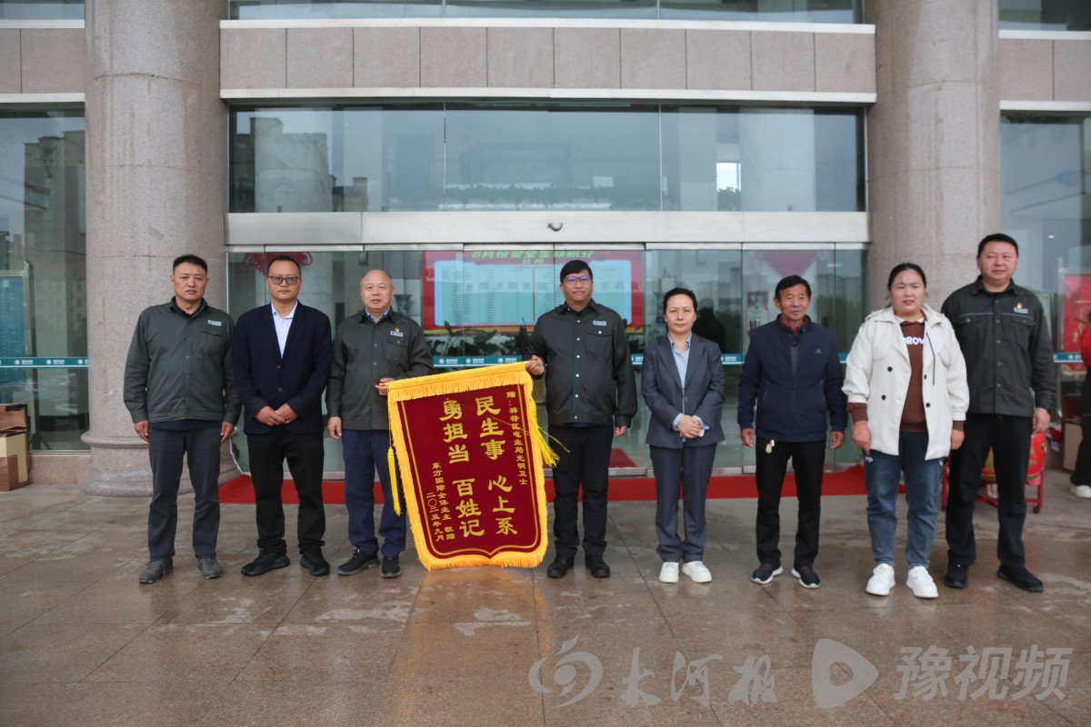 9月22日,祥符区东方国际小区物业经理孙芳将一面写有“民生事心上系勇担当百姓记”的锦旗送到国网开封市祥符供电公司总经理常勇手中,向该公司工作人员表达谢意。