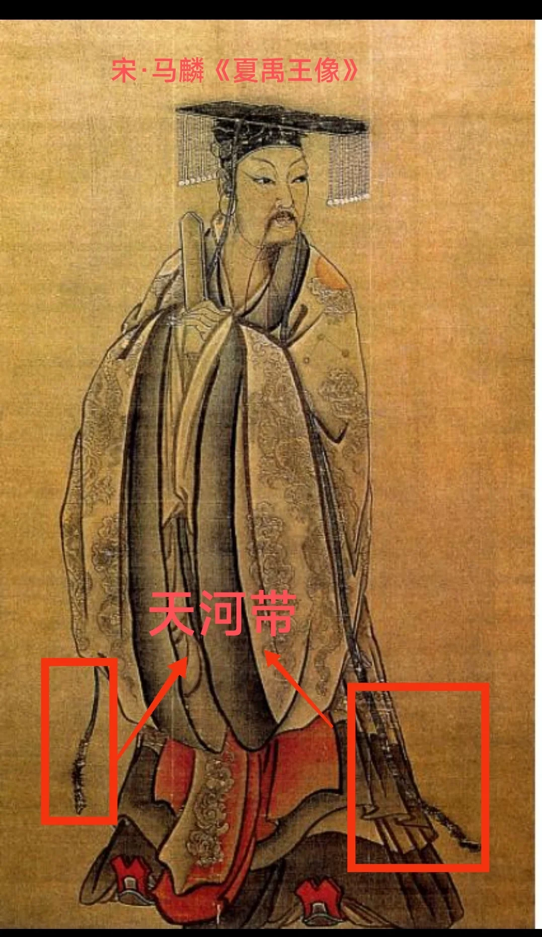 [七R]宋元时期,天河带已下垂至地面,见宋·马麟所绘制夏禹像。(图五)