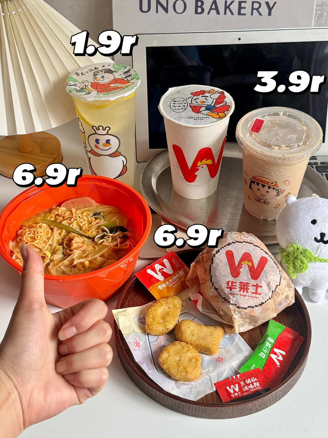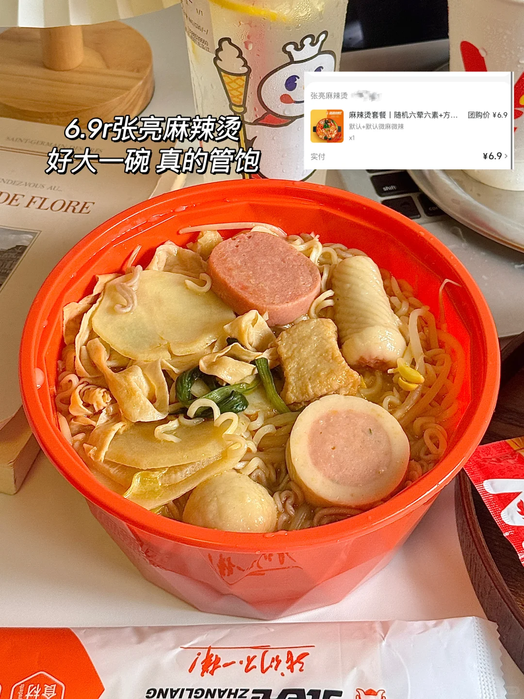 我买了蜜雪冰城柠檬水、华莱士套餐、张亮麻辣烫🍜