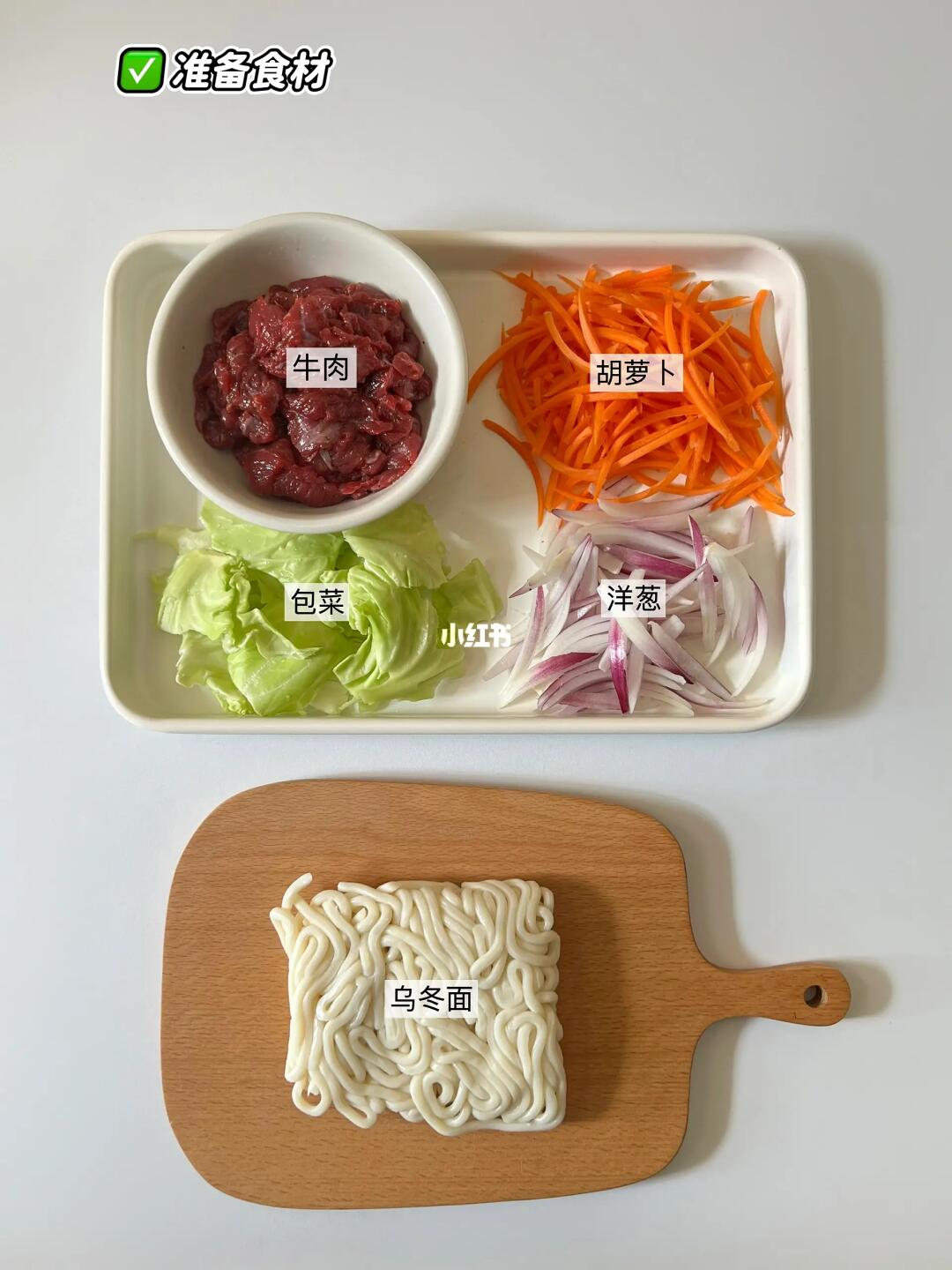 🥕 食材:乌冬面、牛里脊、胡萝卜、包菜、洋葱、大蒜/香葱