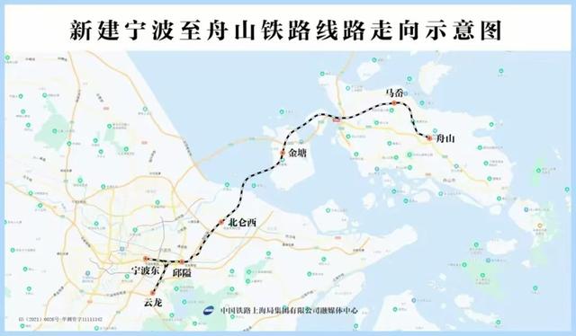 甬舟铁路是国家《中长期铁路网规划(2016—2030年)》的重大项目,甬舟铁路西起宁波东站,经宁波鄞州区、北仑区,舟山金塘岛、册子岛及舟山本岛,东至定海区白泉镇。沿线设有宁波东、云龙、邱隘、北仑西、金塘、马岙、舟山等7个车站。线路全长约77公里,设计时速250公里,力争在2028年10月底前建成通车。这条高铁通车后,将结束舟山不通铁路的历史,届时从宁波到舟山,坐高铁全程最快仅需26分钟,杭州到舟山最快77分钟。