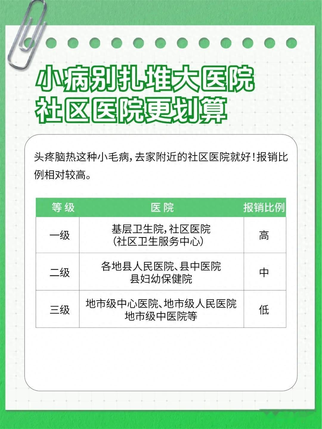 3️⃣看医院等级:医院级别不同报销比例有不同