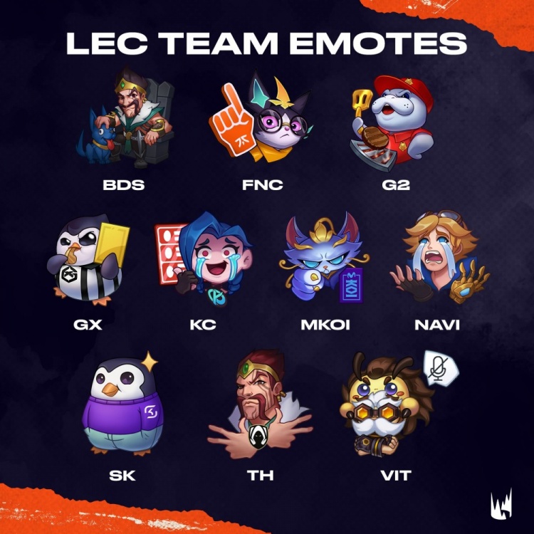 LEC即将推出的战队表情:KC NAVI哭泣 G2烤肉等