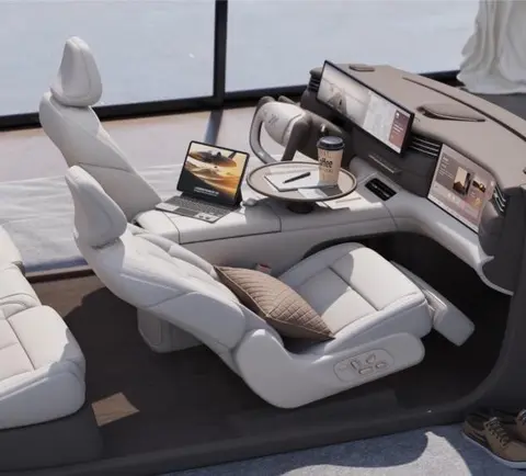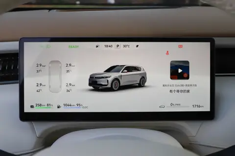 岚图Free+同样是三辐式方向盘和电子怀挡,中控区域是15.6英寸2K悬浮式屏幕,搭载的鸿蒙座舱5.0系统在人车互联方面表现不错。它标配了AR-HUD,能将导航路线直接投射到前风挡上,驾驶员不用低头就能查看信息,降低了行车时注意力分散的风险。除此之外,这台车的多意图语音识别也比较实用,像“打开空调并导航到公司”这种复合指令的识别还是比较准确的,配合一些预设场景模式,还能自动调节座椅、空调和氛围灯,适合喜欢便捷操作的用户。“超级桌面”功能也是岚图Free+的一个亮点,能实现手机应用和车机的无缝衔接,数据同步很方便,不过岚图Free+只支持HUAWEI HiCar,交互方面还是有一定的局限性。