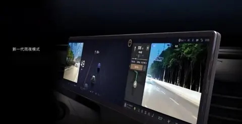 来到内饰部分,两台车的差异就更明显了。智己LS6的驾驶舱布局比较简洁,标配三辐式方向盘搭配电子怀挡,操作顺手,当然也可以选装YAT半辐式方向盘。27.1英寸的屏幕集成了仪表和中控屏功能,加上15.6英寸副驾娱乐屏,足够吸睛,两块屏幕都用了窄边设计,视觉上比较轻薄,而且采用了Mini-Led显示技术的屏幕,色彩显示更绚丽。它搭载的IMOS车载系统基于高通骁龙8295P芯片运行,响应速度比较快,同时还加入了AI大模型支持。在实际使用中,雨夜模式2.0能优化雨天屏幕的显示效果,如同开了数字八倍镜,周围路况信息都能清晰地显示在屏幕中,加上左右两侧的补盲影像,即便在光线不足的情况下,依然能提供比较好的视野;DZT动态区域追踪功能可以实时监测车辆侧后方的盲区,当有行人、电动车等危险目标靠近时,屏幕上会高亮标注目标位置,同时发出提醒,减少了因盲区视线受阻而导致的碰撞事故。副驾的娱乐屏可以独立播放视频,不会影响主驾查看导航,适合长途出行时让副驾乘客打发时间。不仅如此,智己LS6还支持HUAWEI HiCar、CarPlay和CarLink,满足不同手机用户的互联需求。