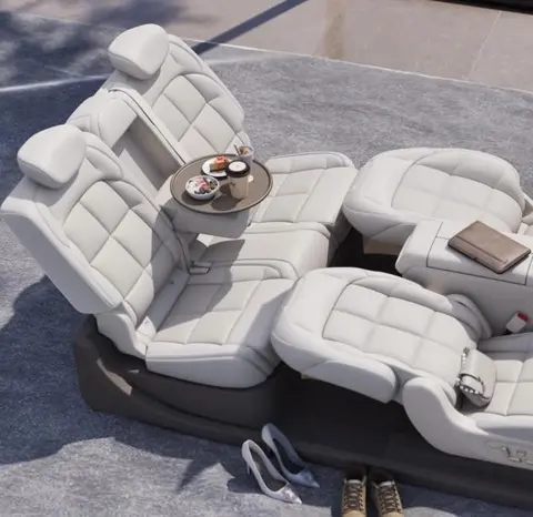 如果智能配置各有优势,那么座椅舒适度就更值得考究了。智己LS6的“超级右排”座椅设计针对性比较强,支持零重力、贵妃椅和折叠三种模式。零重力模式能让乘客的身体得到更好的放松,适合长途出行;贵妃椅模式可以把副驾腿托完全展开,适合临时休息;折叠模式则能拓展后备箱空间,方便放置大件物品。前排座椅的通风、加热和8点按摩功能覆盖了不同季节的需求,主驾的贝果舒压系统通过气囊充放来缓解肌肉疲劳,长时间开车会更舒服。后排座椅支持加热,131°的最大靠背角度和1300mm的横向宽度,让后排乘客的腿部和身体活动空间比较充足,身高180cm左右的乘客坐进去也不会觉得拥挤。