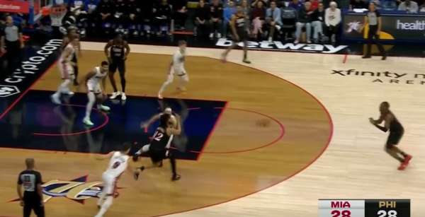 马克西持球与恩比德发动“恩马挡拆”,