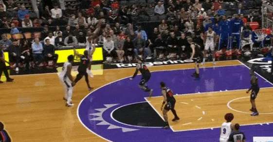 右路突破至三分线后,