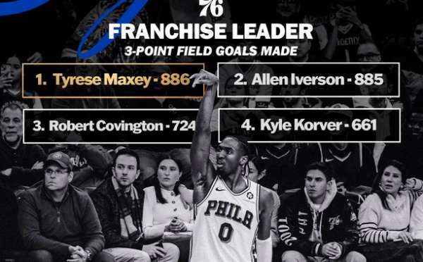 三分手起刀落,正式加冕76人队史三分王。