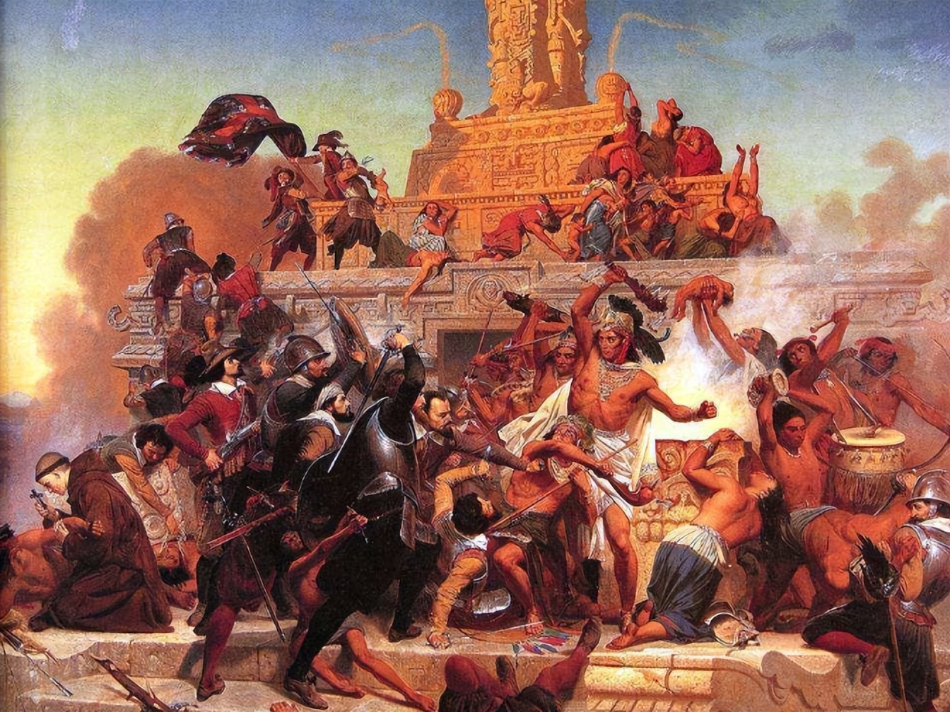“身体”被摧毁,“灵魂”也不放过。西班牙殖民者推行天主教,不是劝说,而是强推。他们摧毁了两千多座原住民神庙,在原址上直接建教堂。