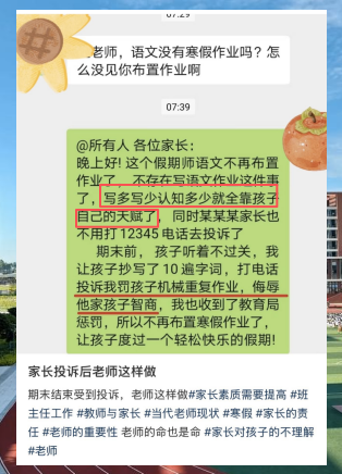 期末考试结束后,班级群里家长一句“语文没有寒假作业吗?”,本是寻常问候,却成了压垮骆驼的最后一根稻草。老师回复得满是委屈:“不再布置作业了,全靠孩子天赋,也省得有人打12345投诉。”