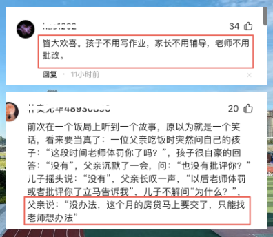 有人调侃“皆大欢喜:孩子不写,家长不管,老师不改”;也有人冷静分析:“公立学校的刚性约束一旦被打破,最终为‘快乐教育’买单的,往往是那些没能力给孩子‘加餐’的普通家庭。”