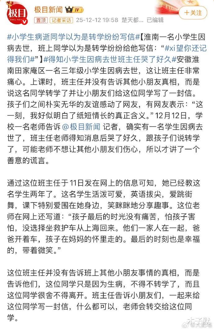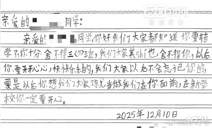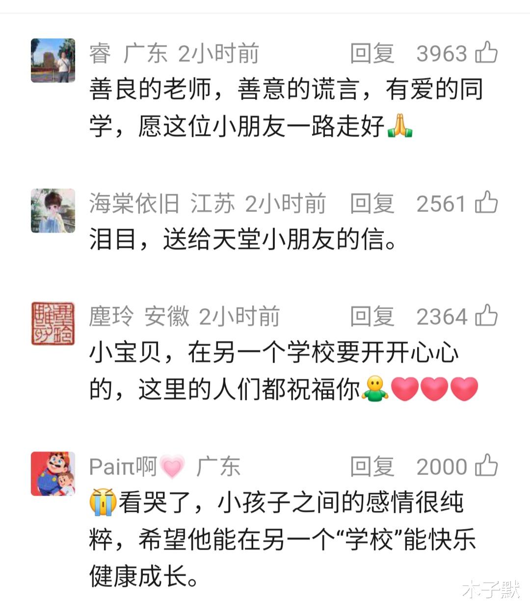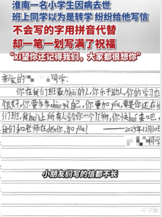 那些写在方格纸上的祝福,或许永远送不到小男孩手里,但一定能飘到云端,让他知道,在人间的教室里,还有一群小伙伴在等他“转学回来”。