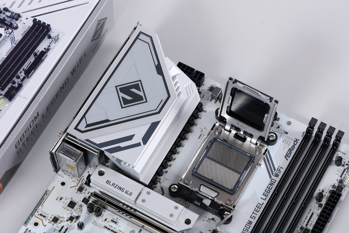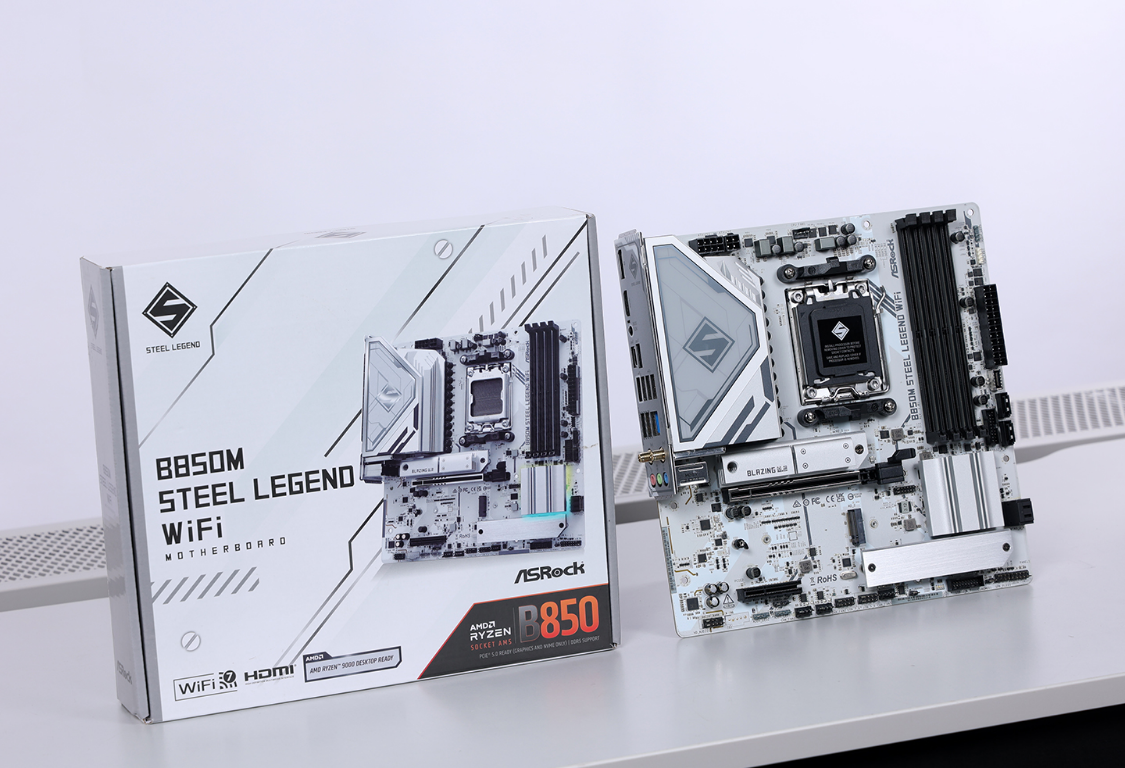 白色主题+紧凑型的需求下,主板当然首选白色M板。还要颜值,要性能,那这款华擎B850M Steel Legend钢铁传奇WiFi主板,应该会是不错的选择。白色PCB搭配大面积银色金属散热装甲,颜值在线。