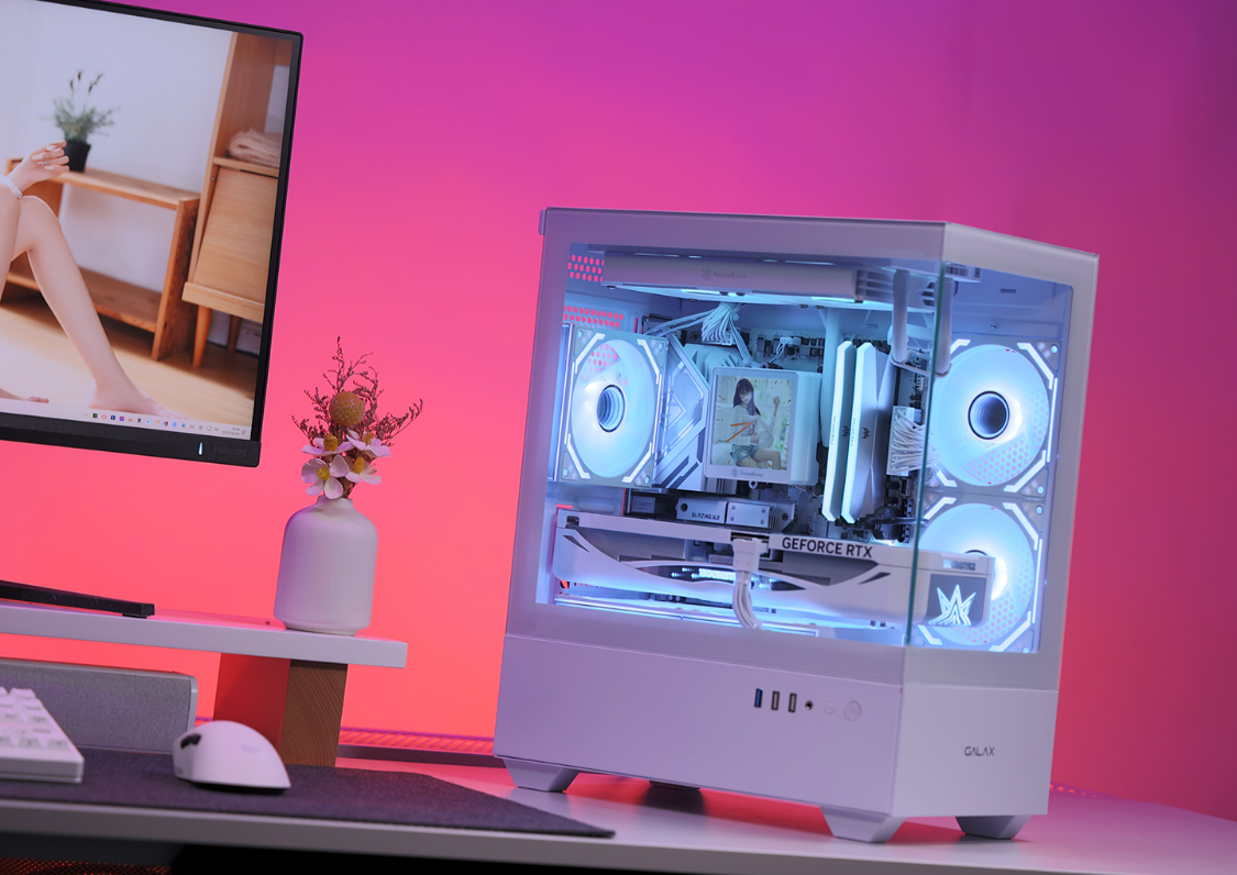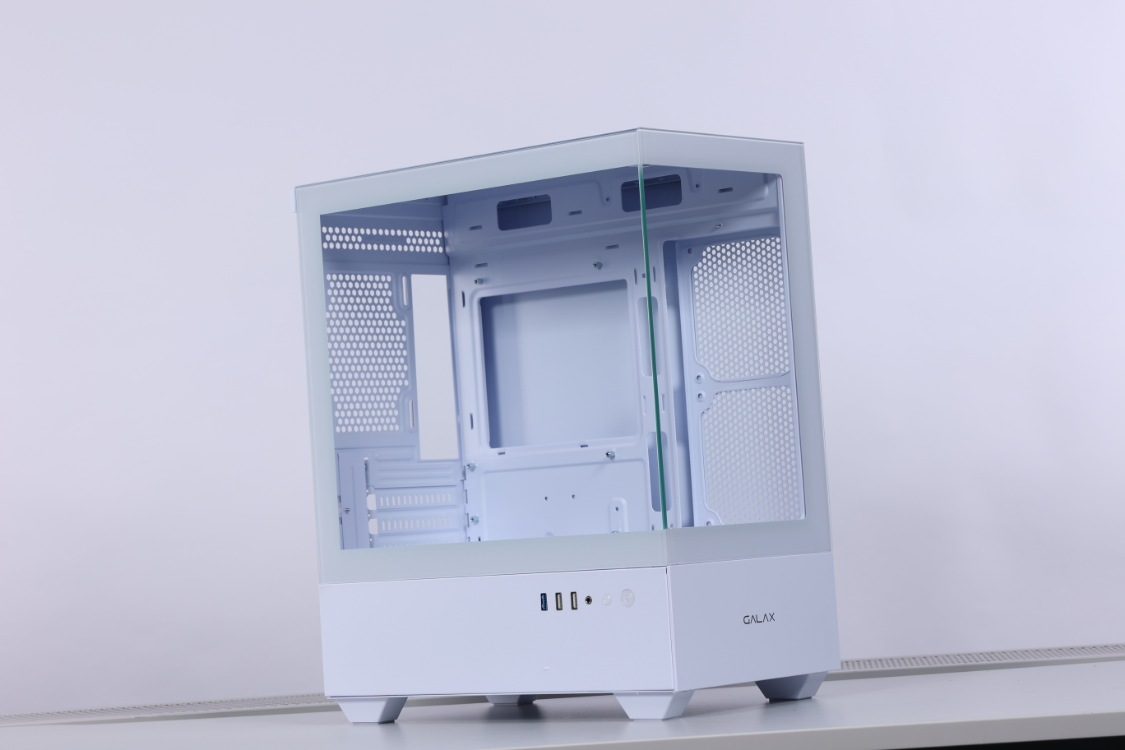 魅影Mini 白色海景房机箱,紧凑型无A柱海景房,三围365*212*442mm,双面钢化玻璃设计。