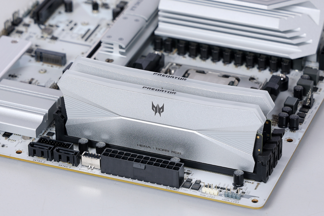 狂飙的内存行情下,不乏以次充好的存在。咱还是老老实实选择了贵但是低时序的宏碁掠夺者Hera影锋D5-6400MHz C30 16G*2内存。在特挑海力士A-Die颗粒、OC PMIC电源管理芯片和10层强化PCB板材的加持下,内存性能直接拉满。内存顶部的缀影RGB灯组,支持各大板厂的神光同步,也能很好地满足玩家对ARGB灯效的要求。