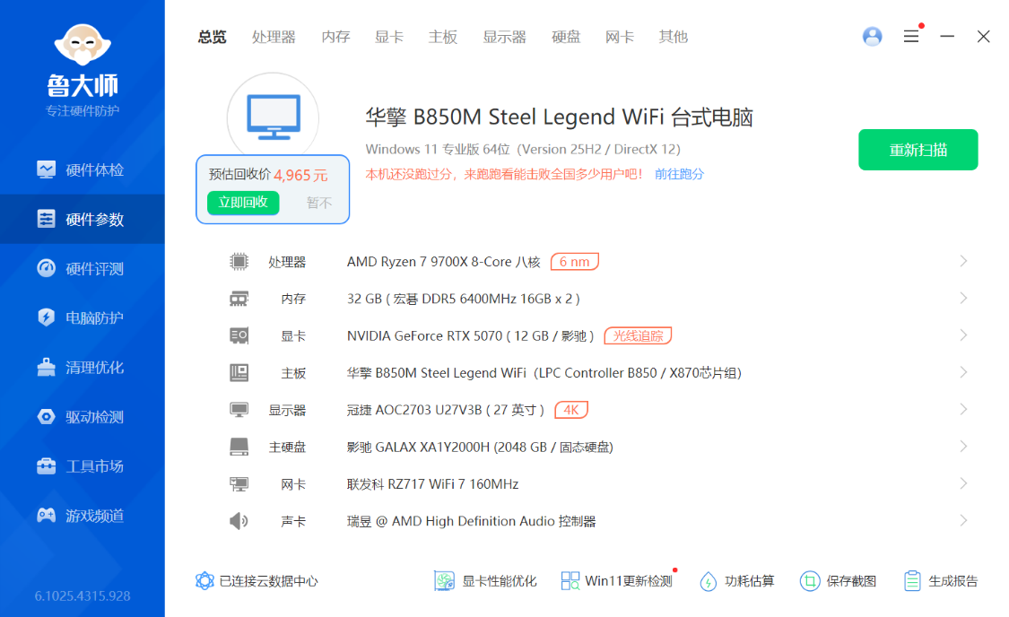 整机颜值表现优秀,但CPU供电位置这个线材线材多少还是让我有些意难平的哈,还得再合计合计怎么走好看点。整机配置方面,除了天价的D5内存,9700X+5070显卡配置的组合,应该还算合理,叠加大促补贴,价格也相对美丽。性能方面,2K分辨率下,游戏性能和生产力表现都不会差,也能很好地满足大部分玩家的日常需求。4K分辨率下,3A大作爽玩,也基本没啥压力。