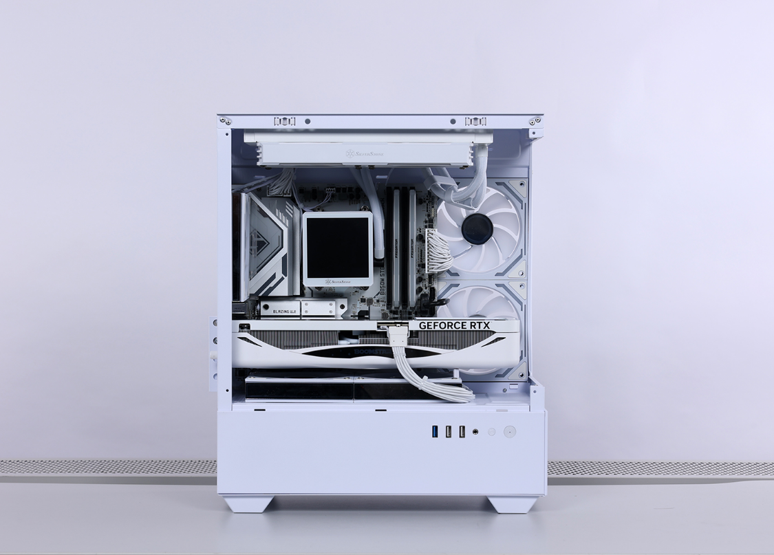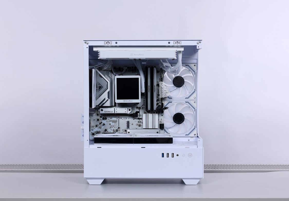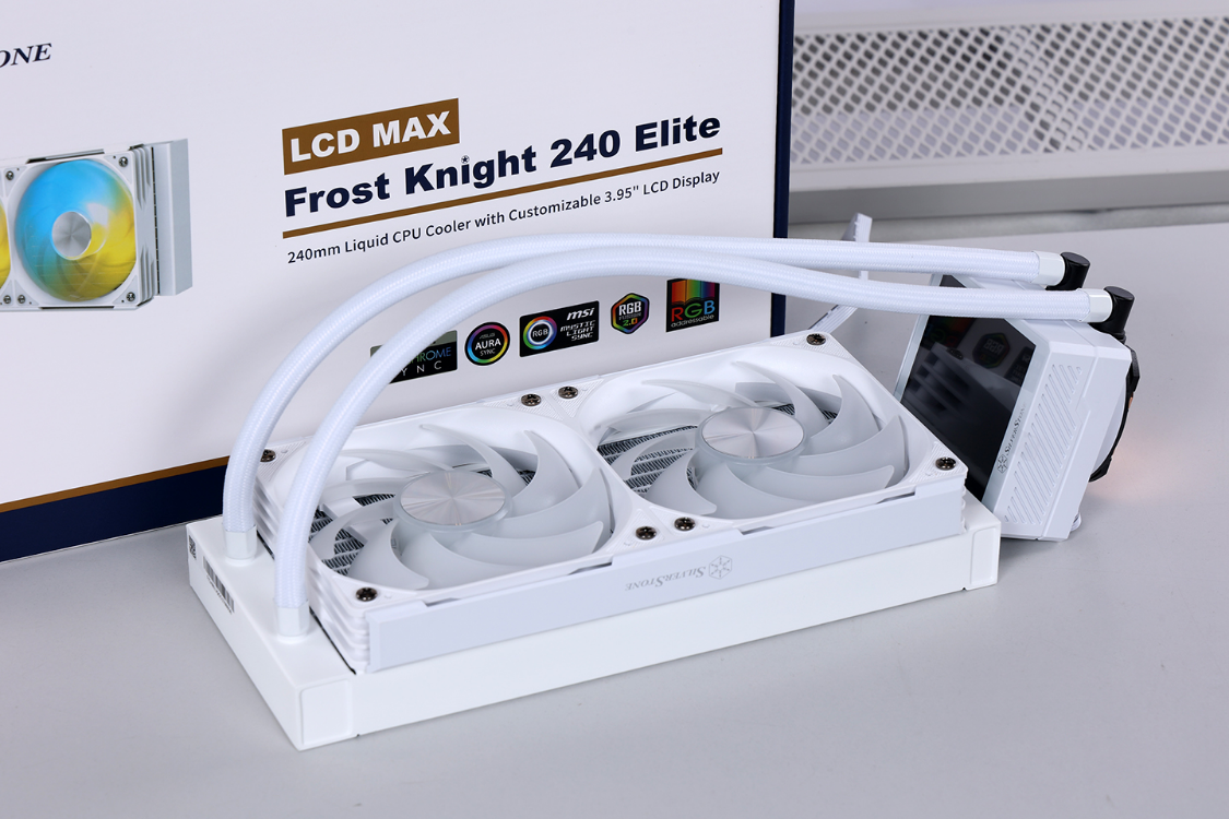 机箱上限是240冷排,咱当然也直接拉满。选择的是银欣E240 MAX ARGB白色一体式水冷。水冷标配2把120mm规格ARGB散热风扇,并出厂预装好在冷排上。水冷风扇之间采用一线通设计,风扇两侧还有挡线条设计,非常贴心。