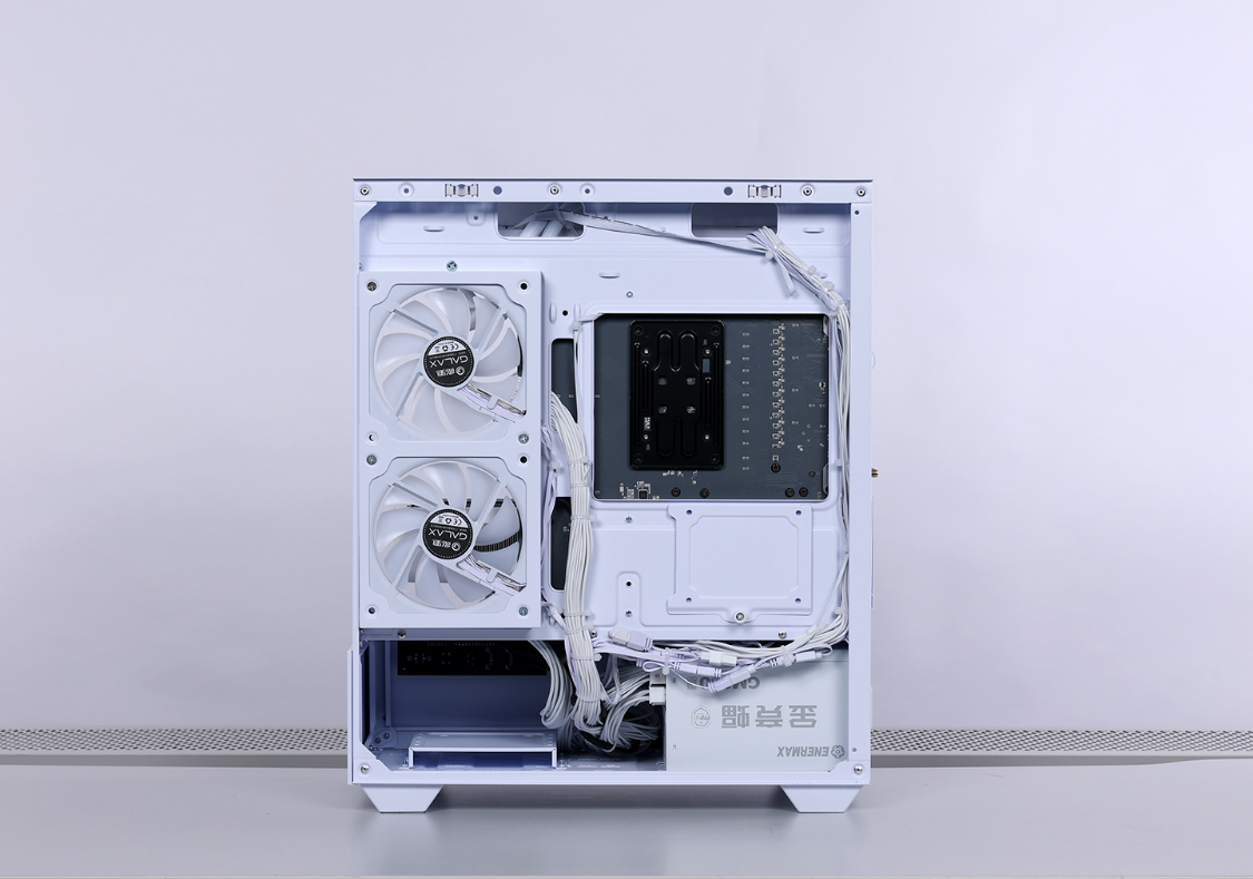 锁好水冷和电源,机箱风扇位也直接拉满影驰梦境二代ARGB散热风扇。