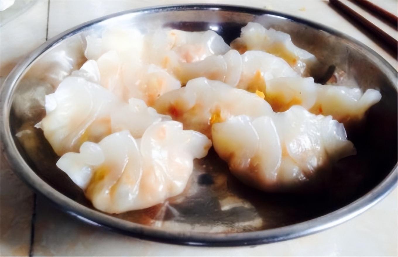 水晶蒸饺最完美的一点在于它光滑透亮的外表,惹人怜爱。手工师傅用澄粉、生粉、猪大油、盐、沸水调制成坯,保证它晶莹透亮的外观,再包入厚厚的三鲜馅,充实它的内在,最后上笼蒸制成就一番美味。