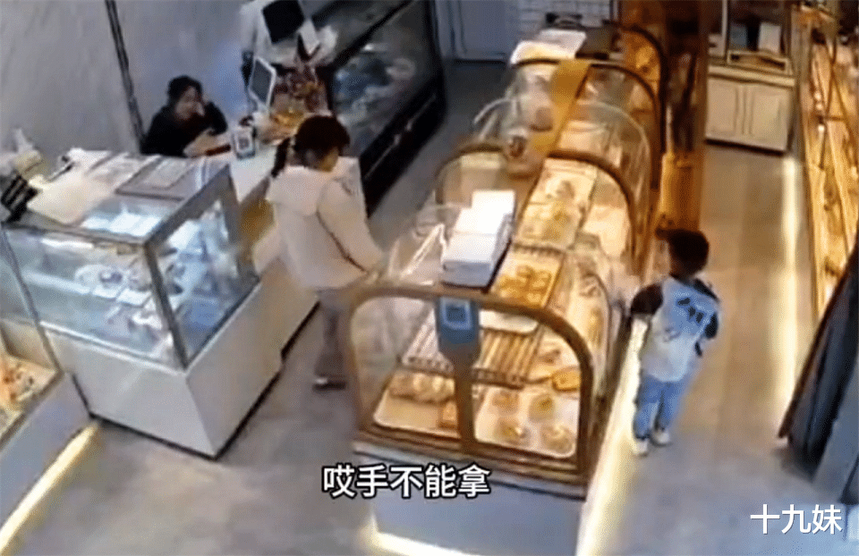 在孩子用手直接拿蛋糕的时候,孩子妈妈就像个没事人一样,而在听到店员阻止自己的宝贝儿子以后,便双手抱胸,在店里来回踱步。可能此时她内心已经破防,就已经开始盘算“复仇计划”了。